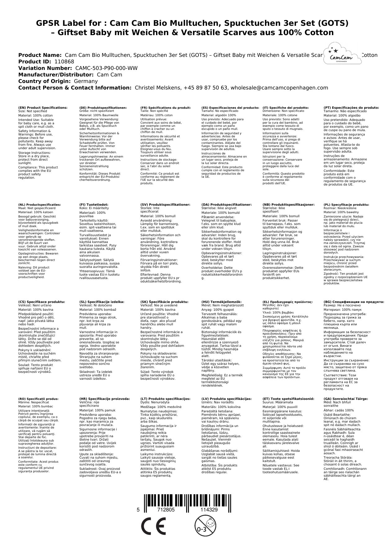 Cam Cam Bio Mulltücher, Spucktücher 3er Set (GOTS) – Geschenkset Baby mit Weichen & Vielseitigen Tüchern aus 100% Baumwolle