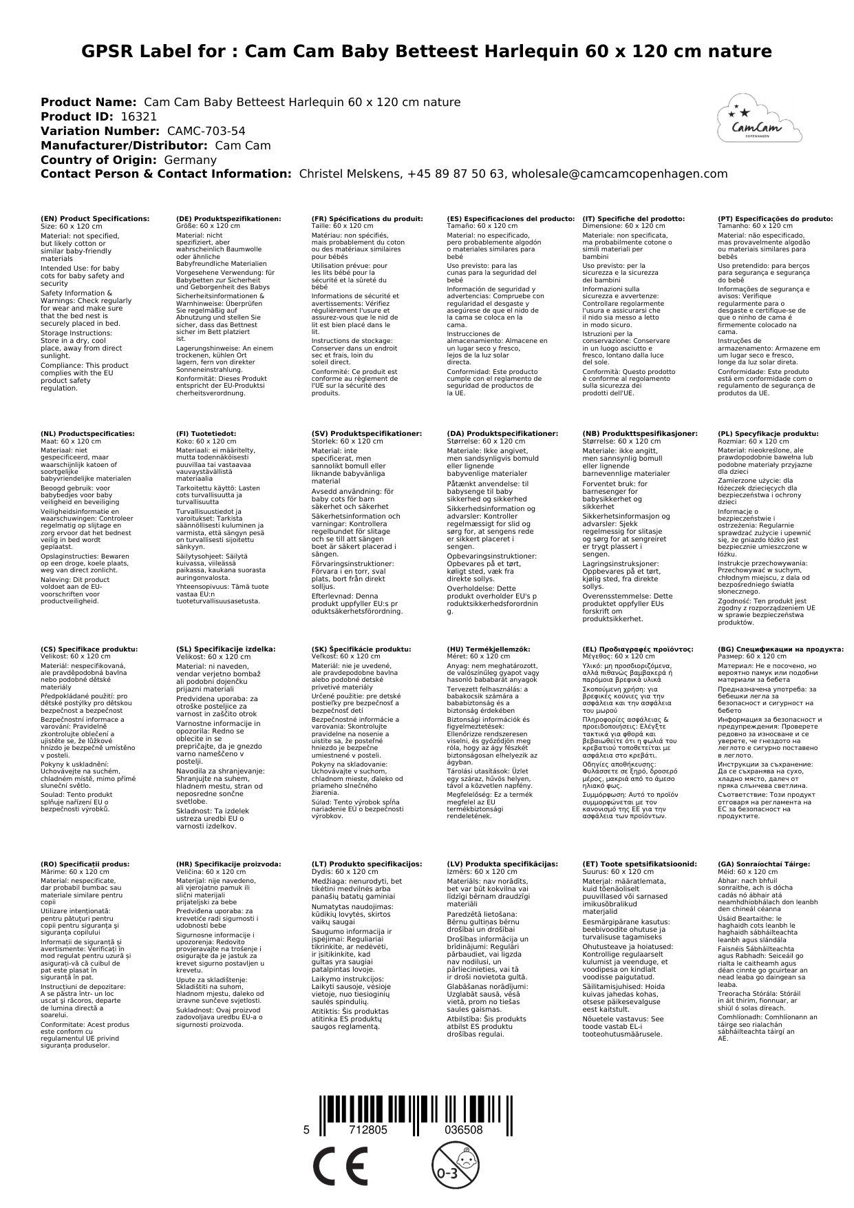 Cam Cam Baby Bettnest Harlequin 60 x 120 cm natur