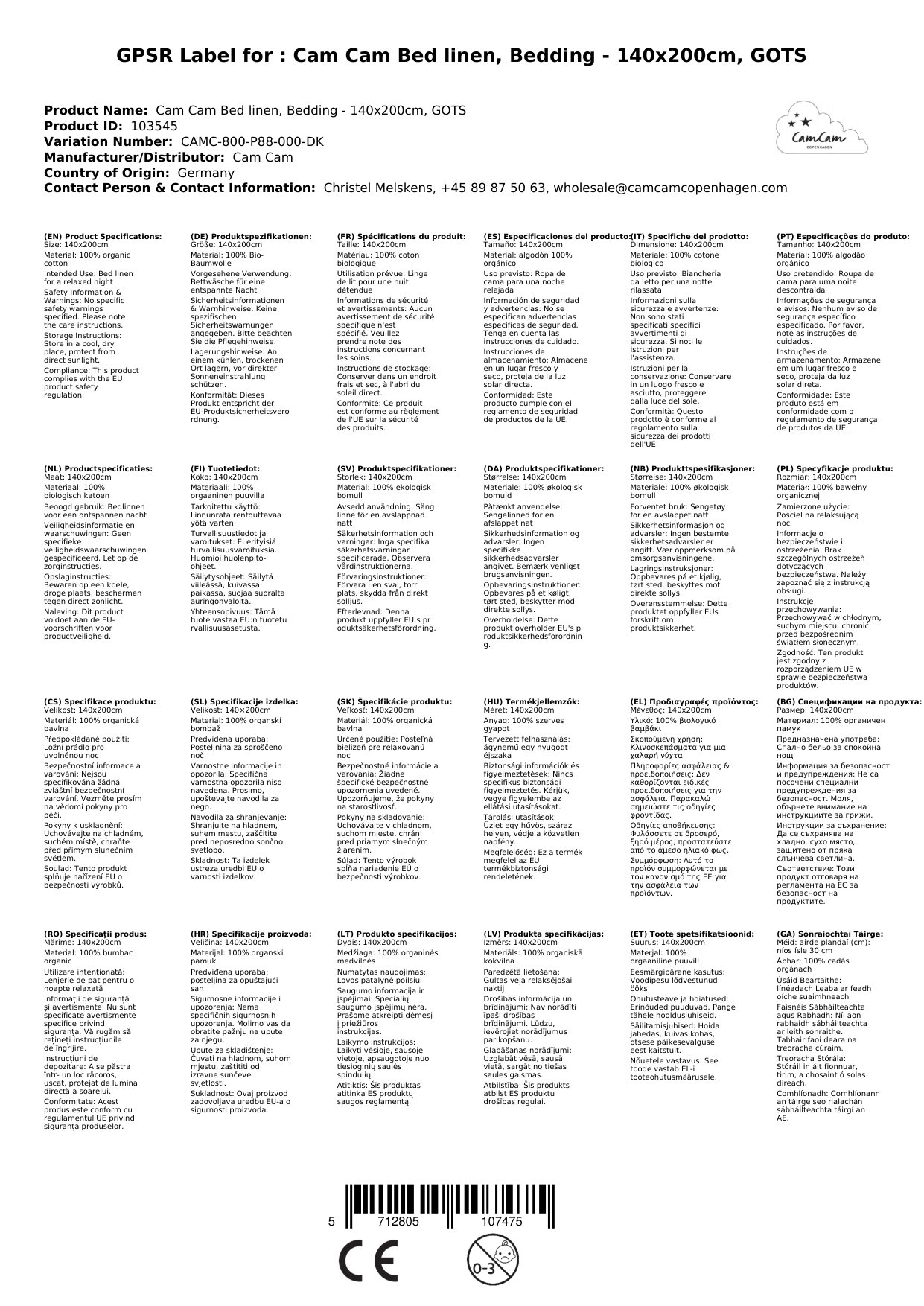 Cam Cam Bettwäsche, Bettzeug - 140x200cm, GOTS