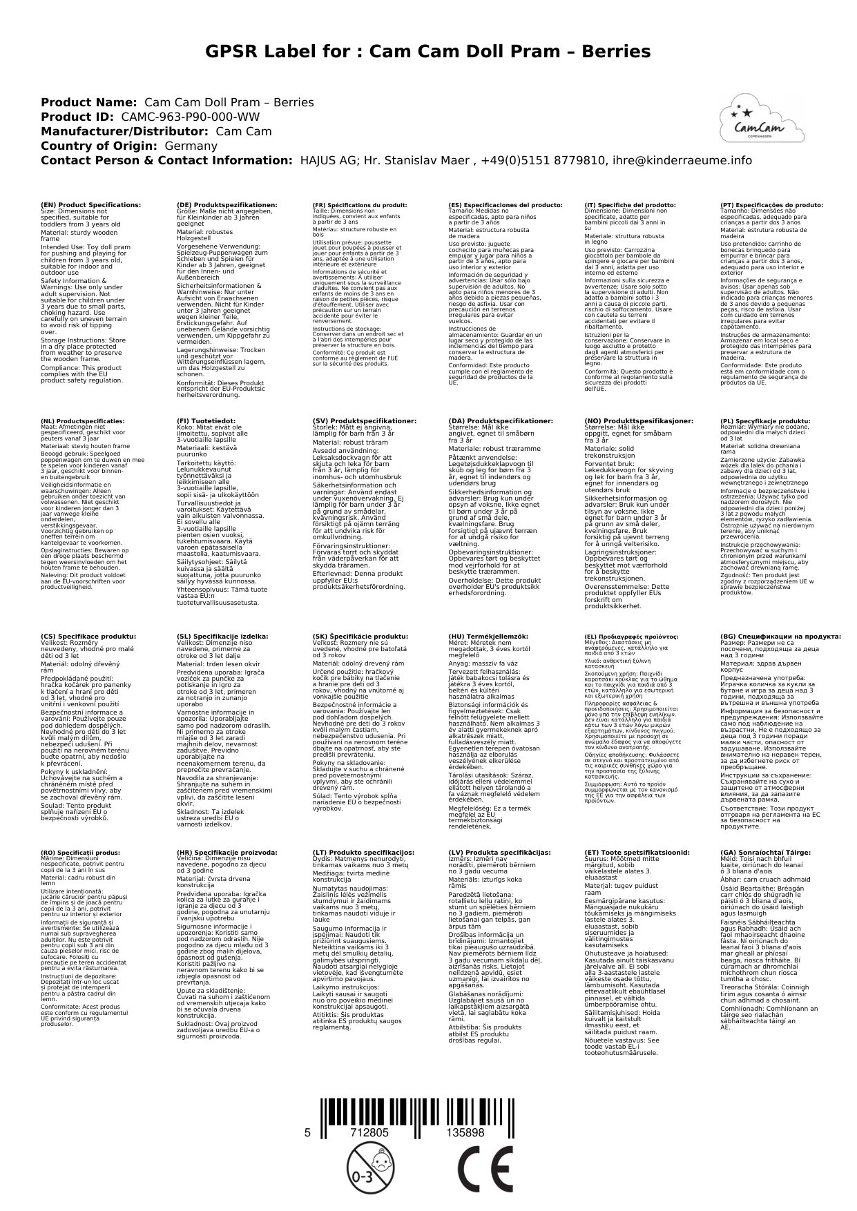 - Authentisches Design: Mit seiner ansprechenden Beerendesign ist der Puppenwagen nicht nur ein Spielzeug, sondern auch ein dekoratives Element im Kinderzimmer.