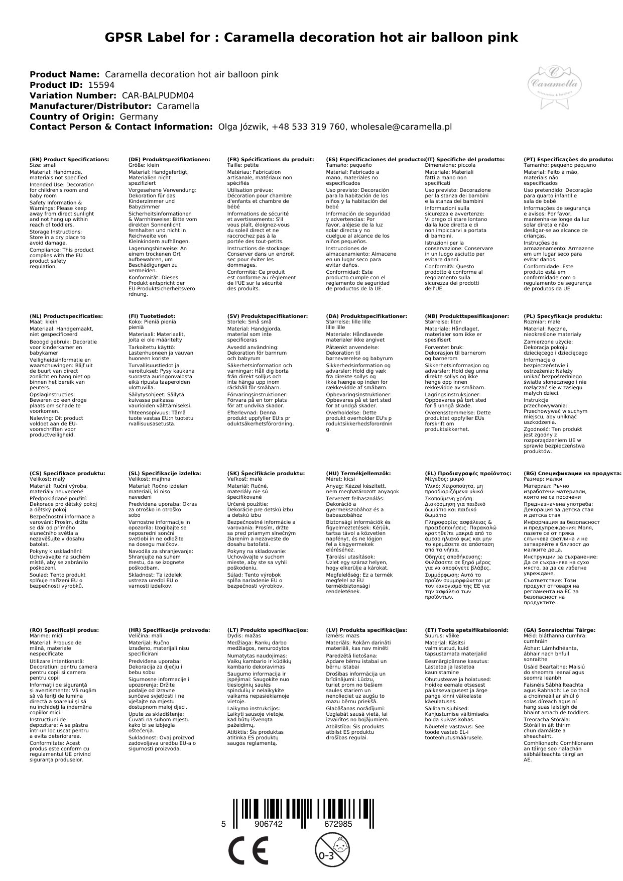 Verleihen Sie dem Raum Ihres Kindes einen märchenhaften Touch mit dem handgefertigten Heissluftballon von Caramella. Diese einzigartige Dekoration ist nicht nur wunderschön gestaltet, sondern auch eine echte Bereicherung für die Ausstattung eines jeden Baby- oder Kinderzimmers.