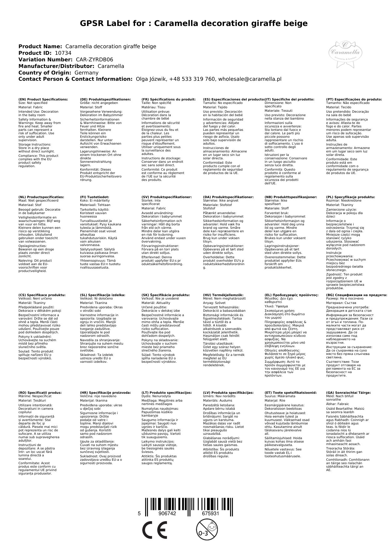 Caramella Deko Giraffe beige