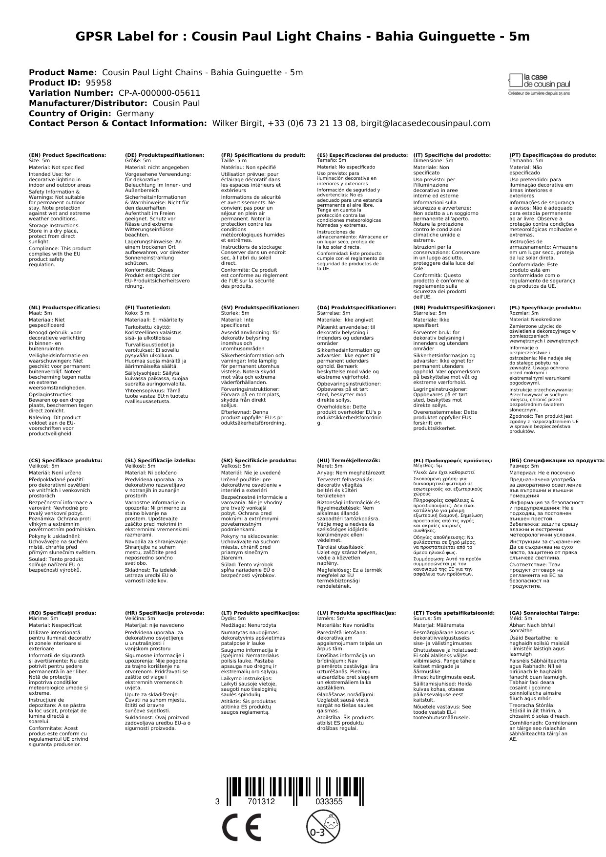 Stellen Sie eine Frage, um mehr über das Produkt zu erfahrenCousin Paul Lichterketten - Bahia Guinguette - 5m