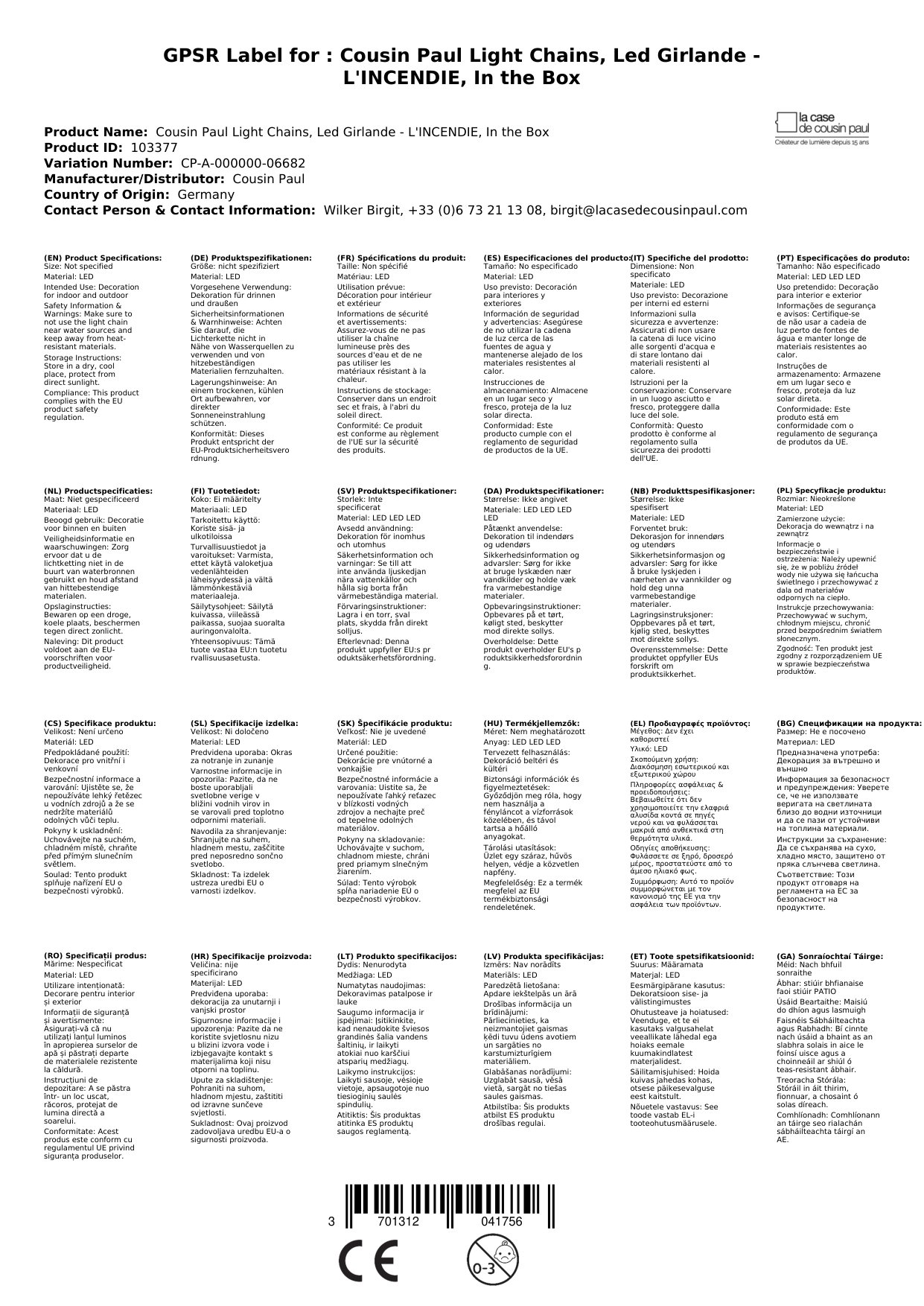 Stellen Sie eine Frage, um mehr über das Produkt zu erfahrenCousin Paul Lichterketten, Led Girlande - L'INCENDIE, In der Box