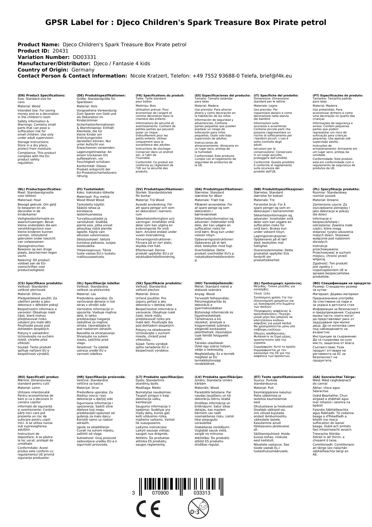 Djeco Kinder Spardose Schatzkiste Piraten petrol