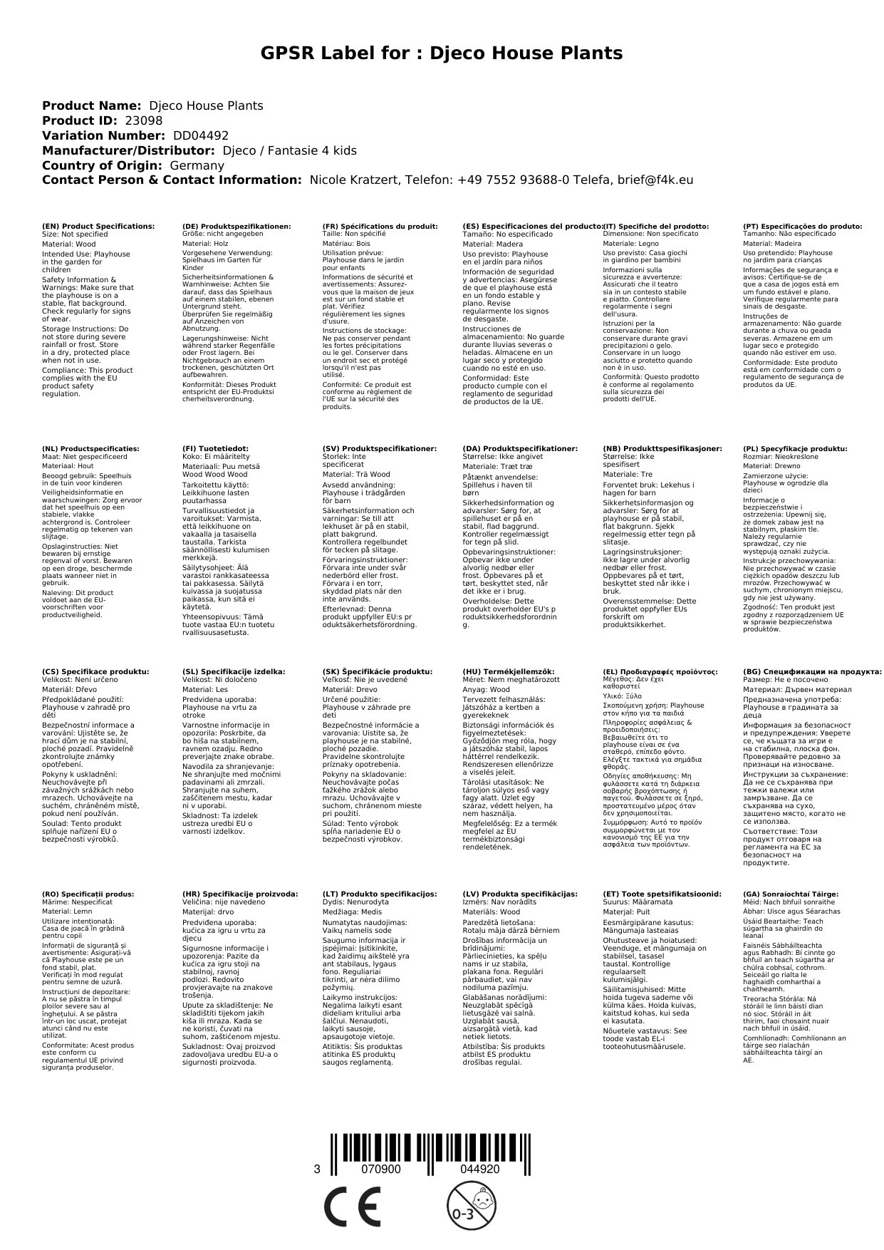 Djeco Spielhaus Pflanzen