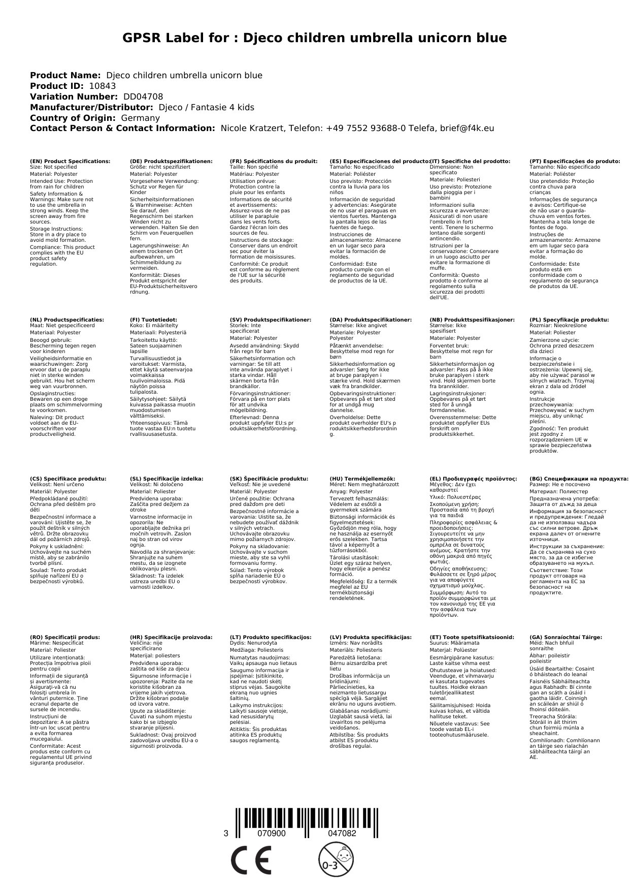 Djeco Kinder Regenschirm Einhorn blau