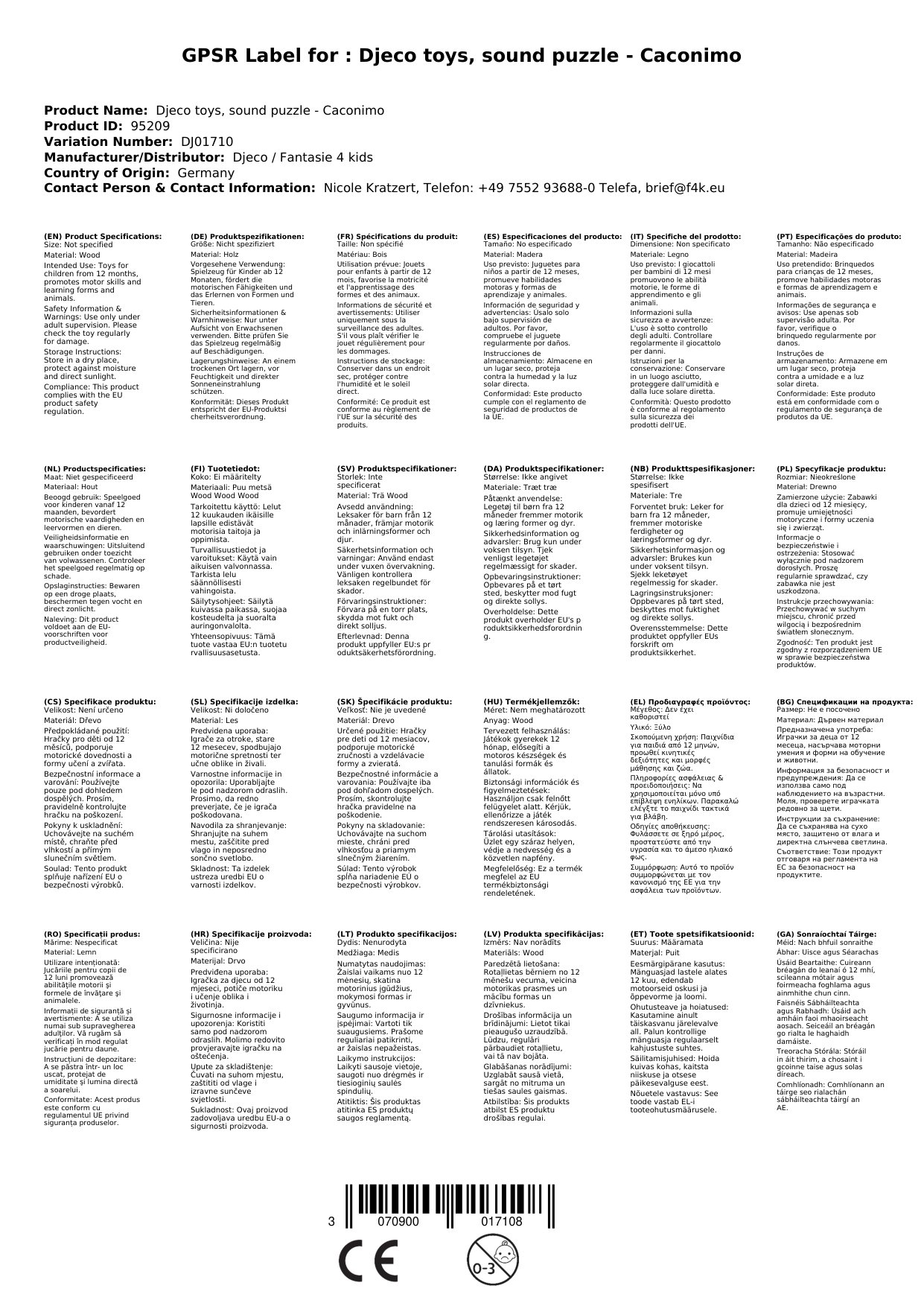 Stellen Sie eine Frage, um mehr über das Produkt zu erfahrenDjeco Spielzeug, Soundpuzzle - Caconimo