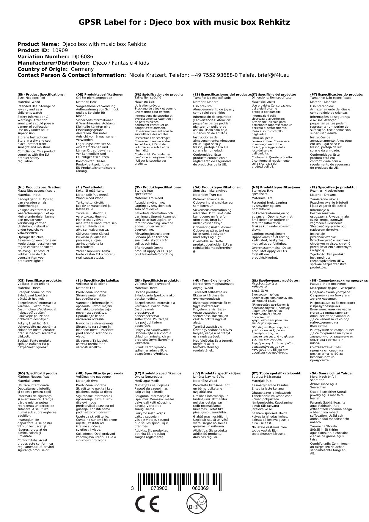 - Inhalt: Eine mit Papier überzogene Musikspieldose aus Holz, innen mit Samt ausgekleidet, 1 Schublade