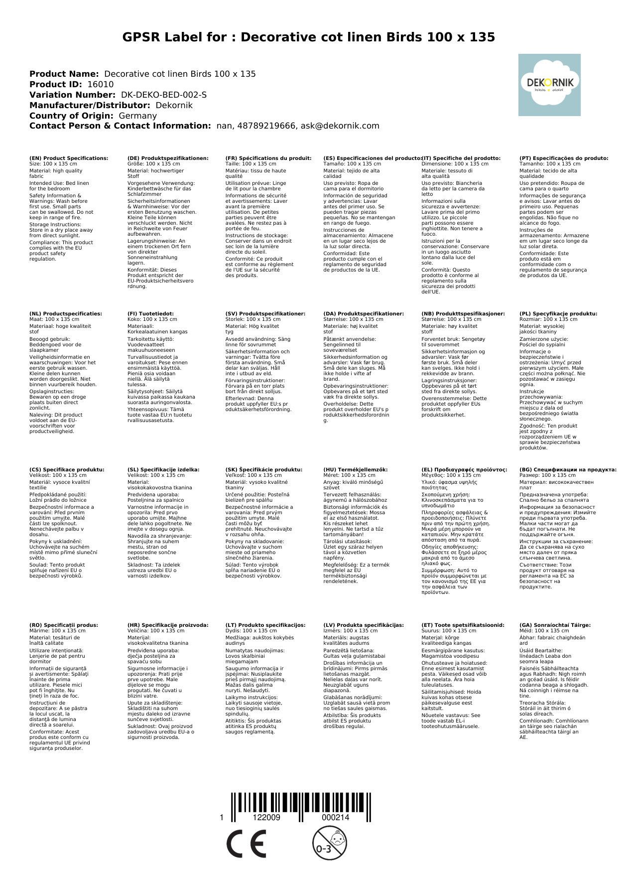 Dekornik Kinderbettwäsche Vögel 100 x 135