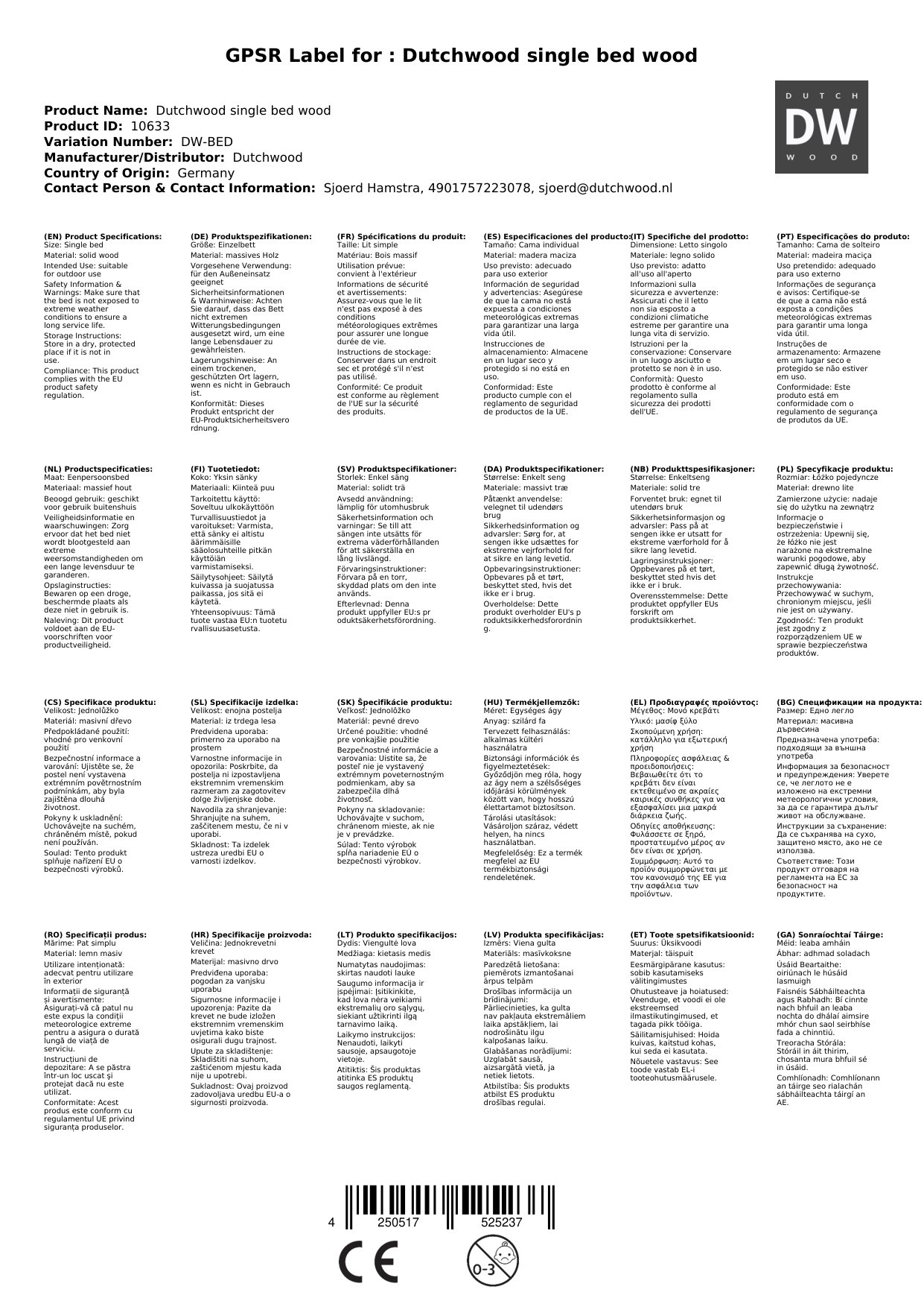 Dutchwood Einzelbett Holz, Bettkasten: ohne Bettschublade