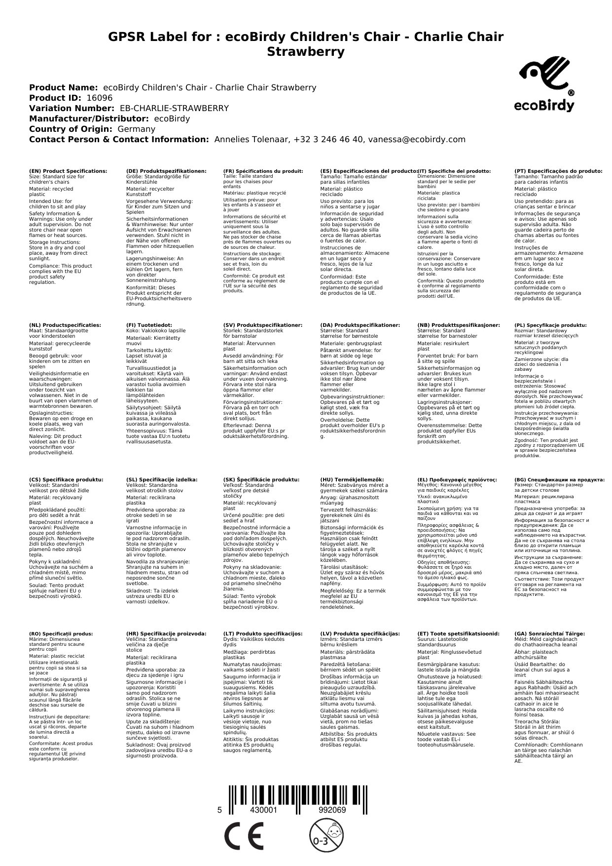 ecoBirdy Kinderstuhl - Charlie Chair Strawberry