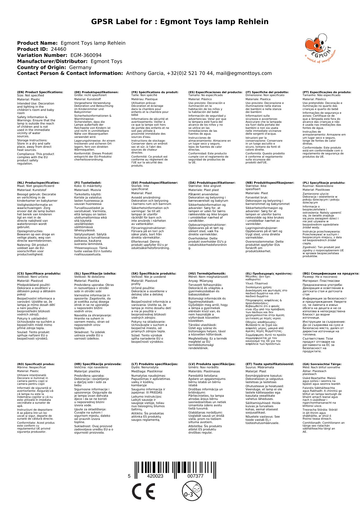 Die Lampe ist auch in anderen Farben erhältlich. Diese finden Sie unterhalb dieser Beschreibung. Weitere Motive finden Sie, wenn Sie auf den Herstellerlink klicken.