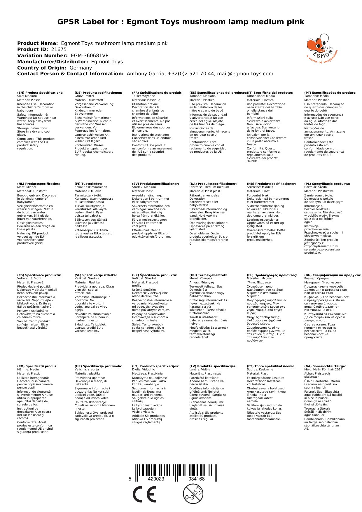 Die Lampe ist auch in anderen Farben und Größen erhältlich. Diese zeigen wir Ihnen unterhalb dieser Beschreibung. Alles von Egmont Toys finden Sie übrigens, wenn Sie auf den Herstellerlink klicken.