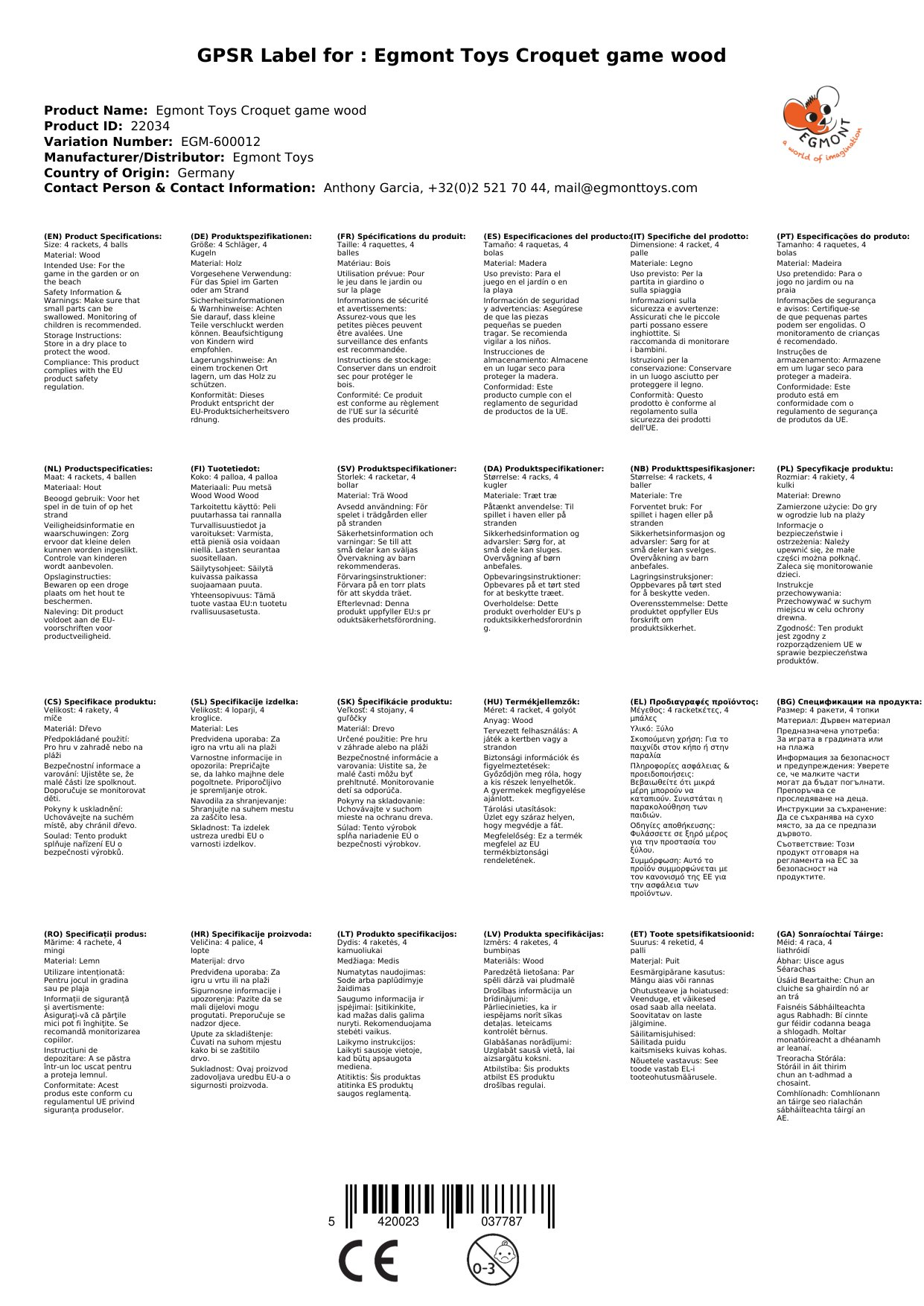Egmont Toys Croquet Spiel Holz