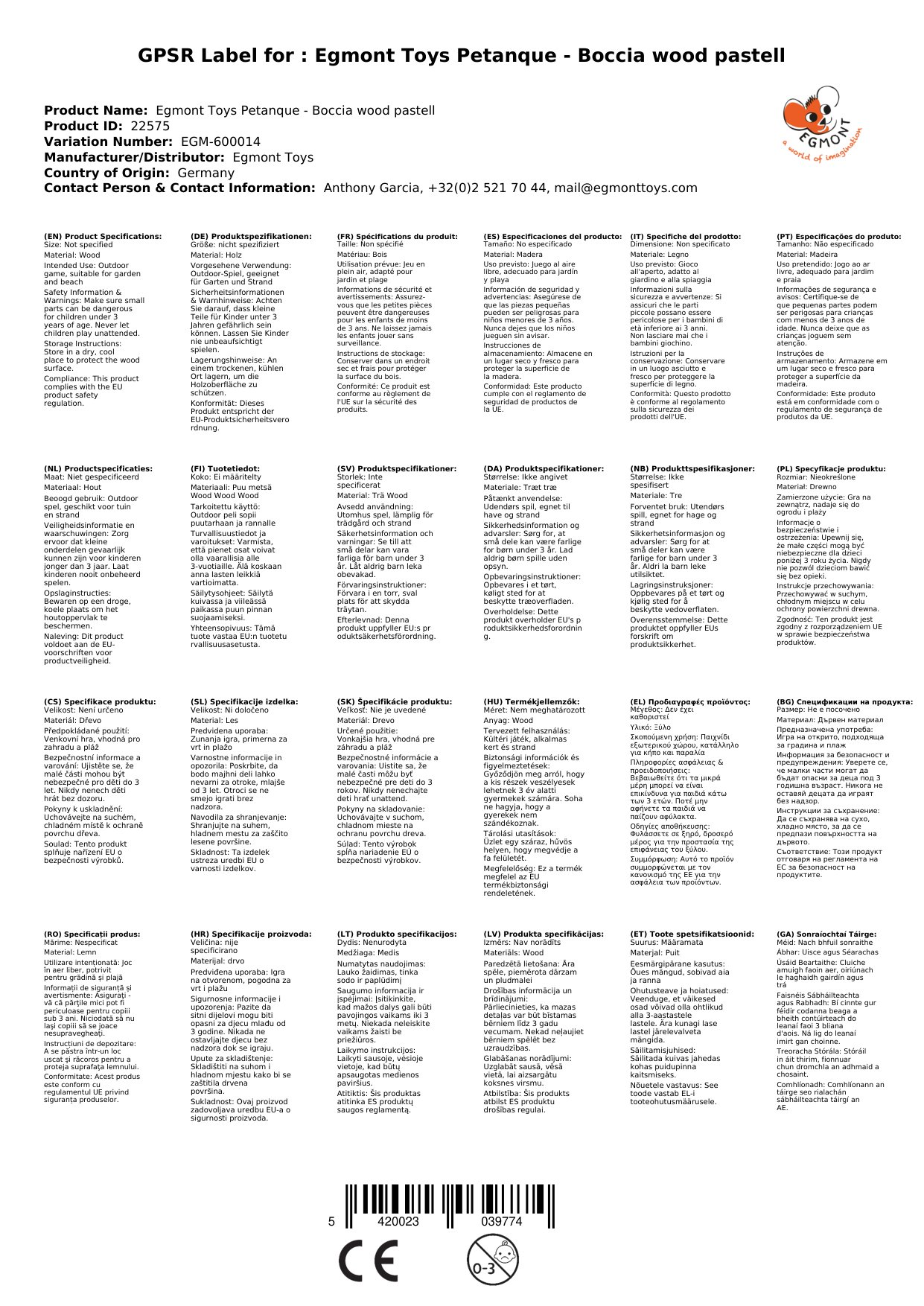 Hier zeigen wir Ihnen eine großartige Version des beliebten Petanque - Boccia - Boule Spiels von Egmont Toys. Die Holzkugeln in tollen Pastellfarben sind ein schöner Blickfang im Garten aber auch am Strand. Egal, wie Sie das Spiel nennen, der Sinn des ganzen ist immer der gleiche: die kleine Kugel werfen und dann abwechsenld versuchen, die eigenen Kugeln möglichst nah an das 'Schweinchen' zu positionieren. Wenn dabei zufällig eine gegnerische Kugel getroffen wird - c'est la vie ...