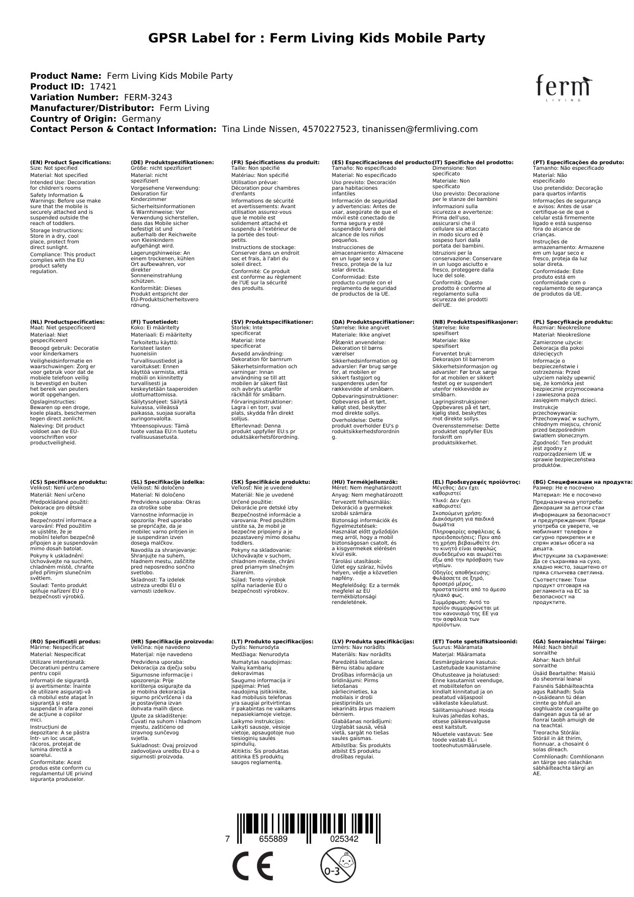 Ferm Living Kinder Mobile Party
