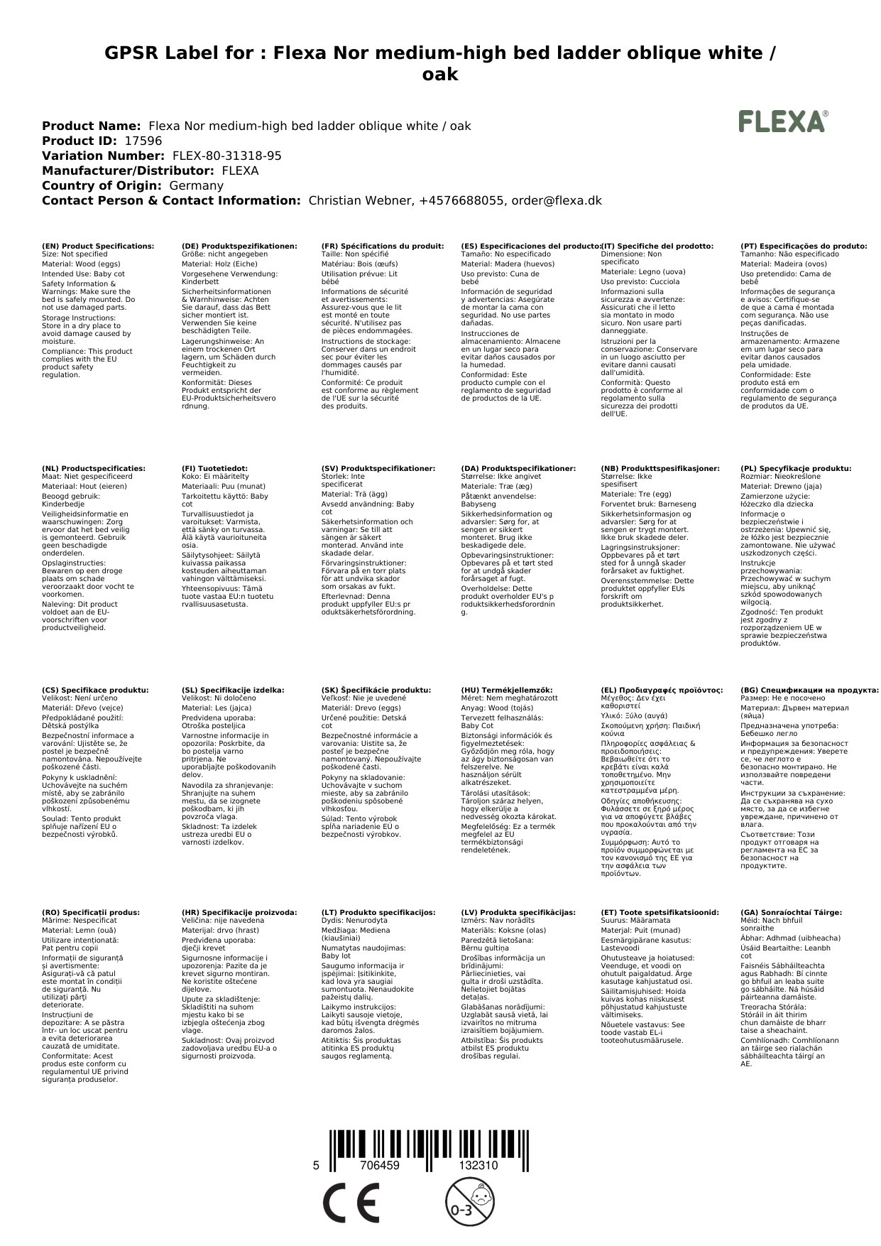Flexa Nor mittelhohes Bett Leiter schräg weiß / Eiche