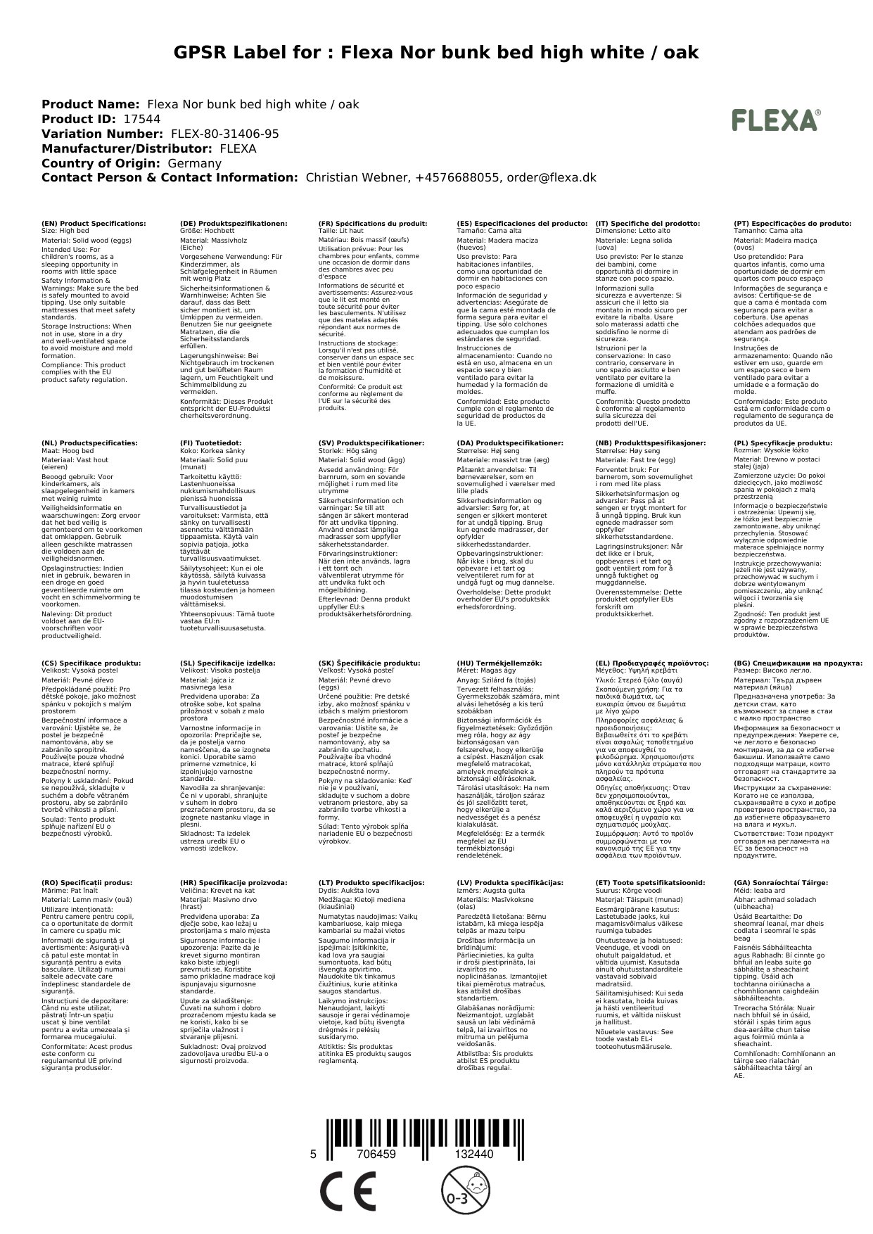 Flexa Nor Etagenbett hoch weiß / Eiche