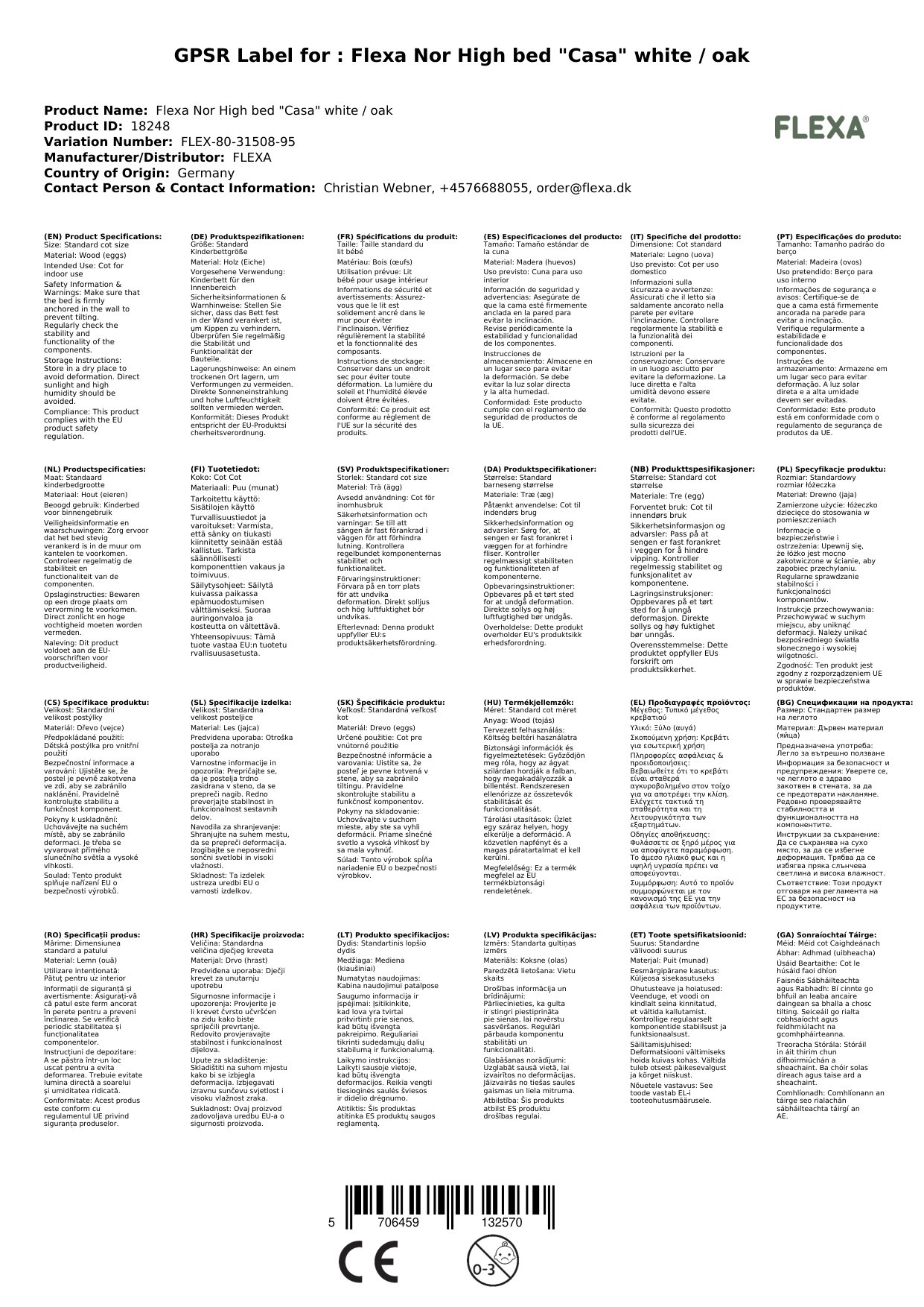 Flexa Nor Hochbett "Casa" weiß / Eiche