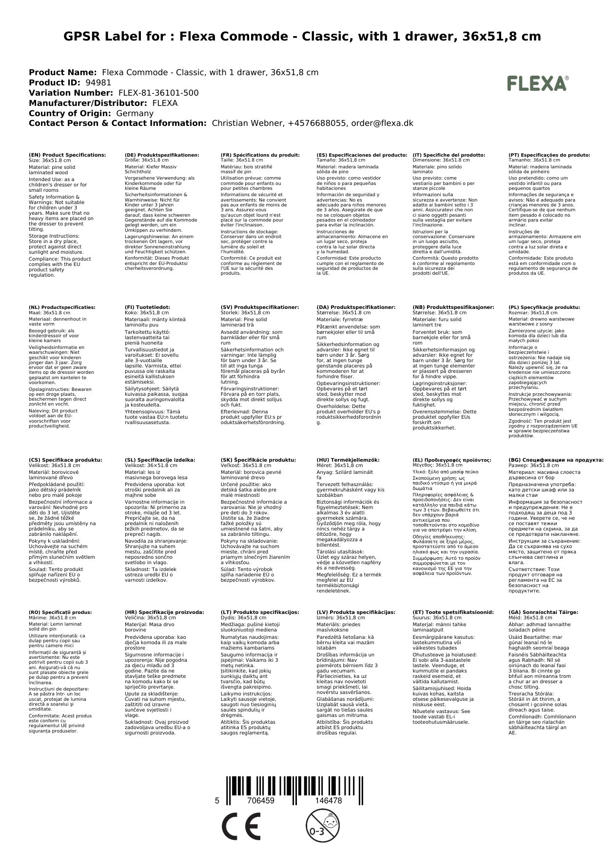 Stellen Sie eine Frage, um mehr über das Produkt zu erfahrenFlexa Kommode - Classic, mit 1 Schublade, 36x51,8 cm