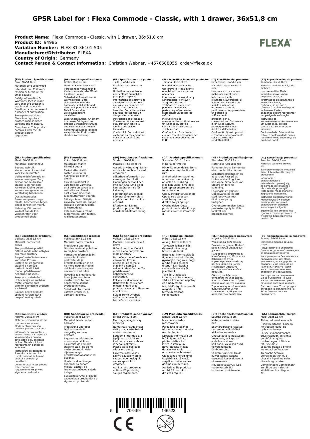 Stellen Sie eine Frage, um mehr über das Produkt zu erfahrenFlexa Kommode - Classic, mit 1 Schublade, 36x51,8 cm