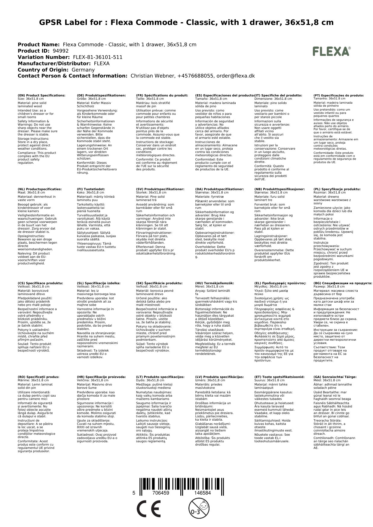 Stellen Sie eine Frage, um mehr über das Produkt zu erfahrenFlexa Kommode - Classic, mit 1 Schublade, 36x51,8 cm