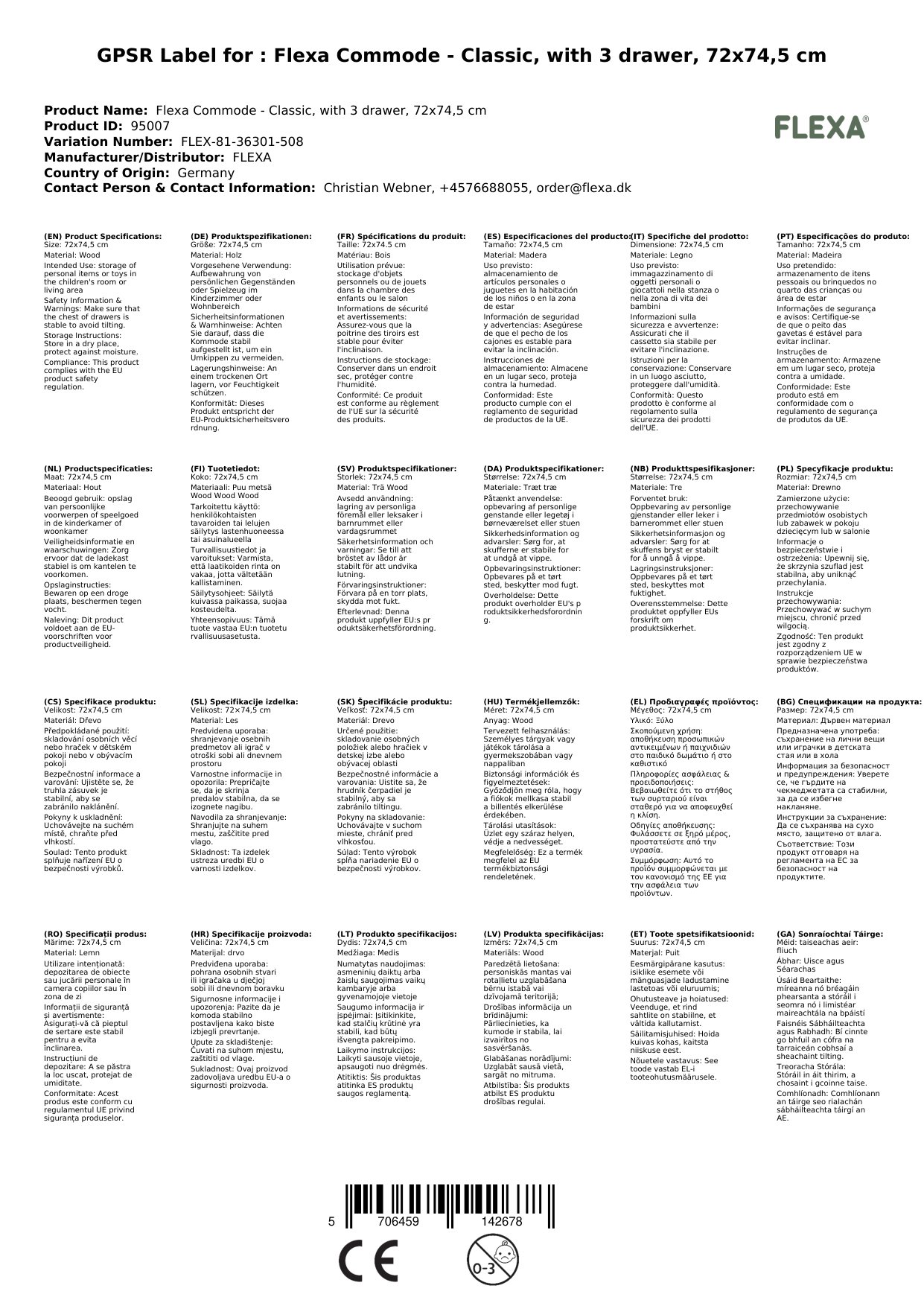 Sie suchen eine klassische Kommode mit 3 Schubladen für Ihr Kinderzimmer oder Wohnbereich? Die Flexa Kommode ist die perfekte Lösung für Ihren Bedarf. Mit einer Größe von 72x74,5 cm und einem Nettogewicht von 25,59 kg bietet sie ausreichend Stauraum für Kleidung, Spielzeug oder andere Gegenstände.