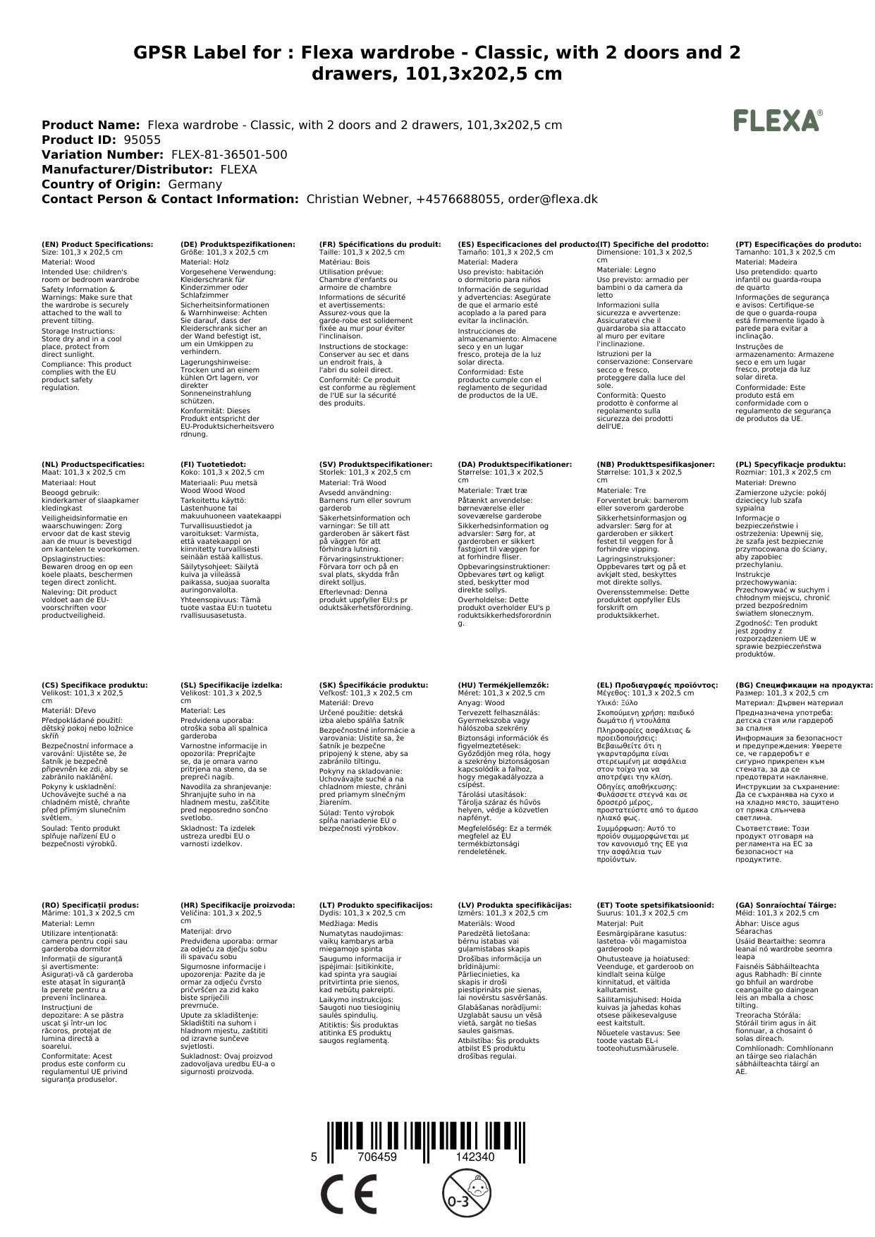 Stellen Sie eine Frage, um mehr über das Produkt zu erfahrenFlexa Kleiderschrank - Classic, mit 2 Türen und 2 Schubladen, 101,3x202,5 cm