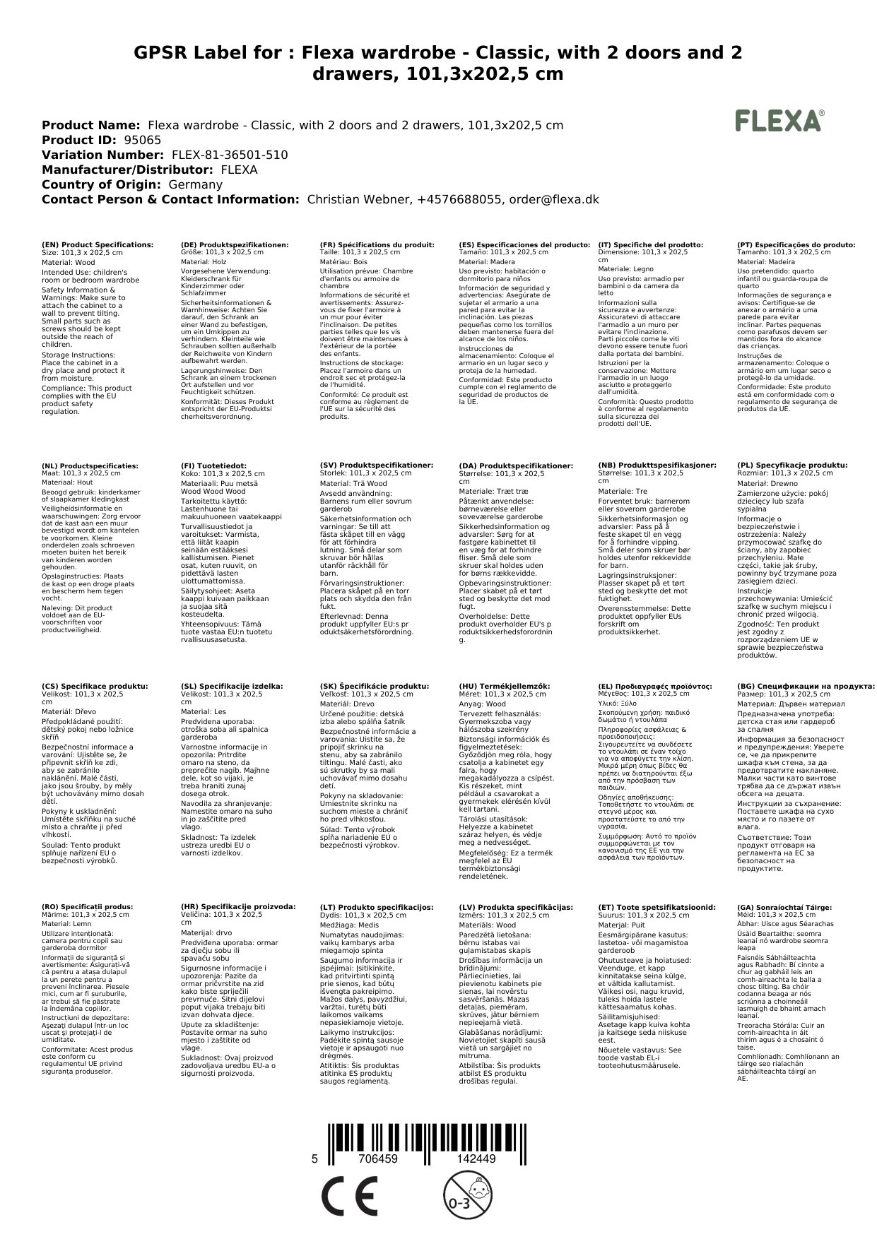 Stellen Sie eine Frage, um mehr über das Produkt zu erfahrenFlexa Kleiderschrank - Classic, mit 2 Türen und 2 Schubladen, 101,3x202,5 cm