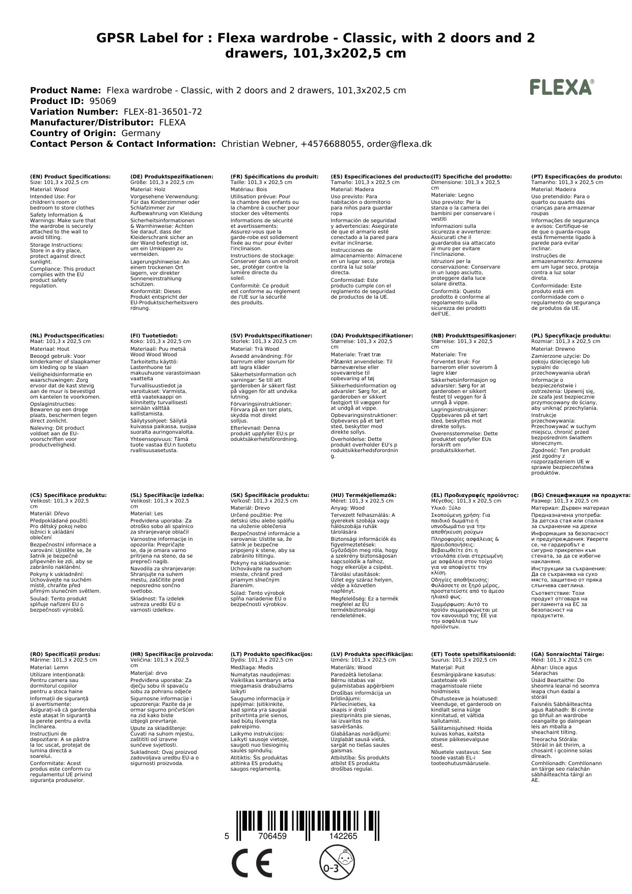 Stellen Sie eine Frage, um mehr über das Produkt zu erfahrenFlexa Kleiderschrank - Classic, mit 2 Türen und 2 Schubladen, 101,3x202,5 cm