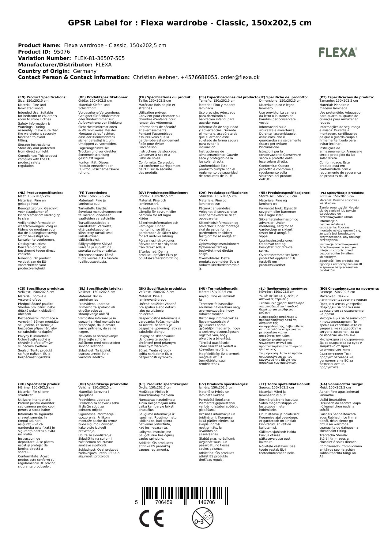 Stellen Sie eine Frage, um mehr über das Produkt zu erfahrenFlexa Kleiderschrank - Classic, 150x202,5 cm