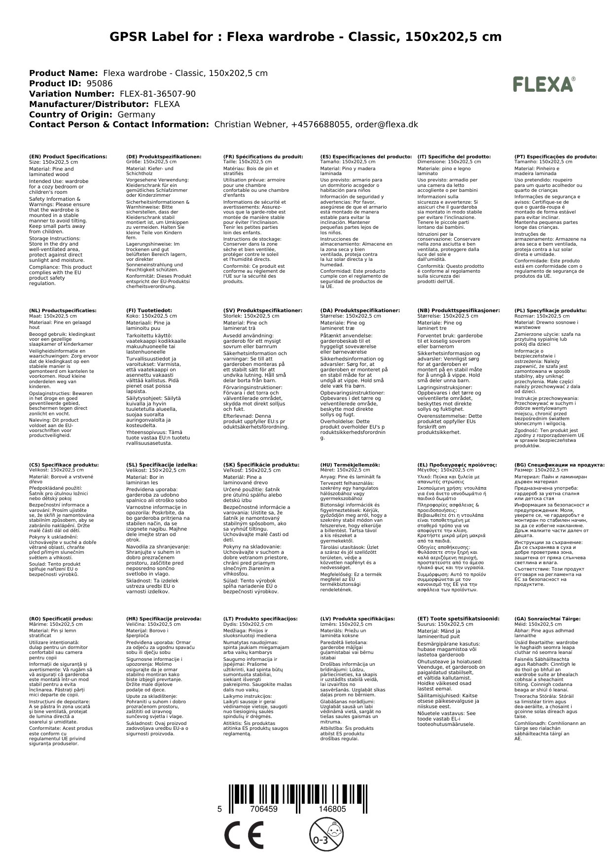 Stellen Sie eine Frage, um mehr über das Produkt zu erfahrenFlexa Kleiderschrank - Classic, 150x202,5 cm
