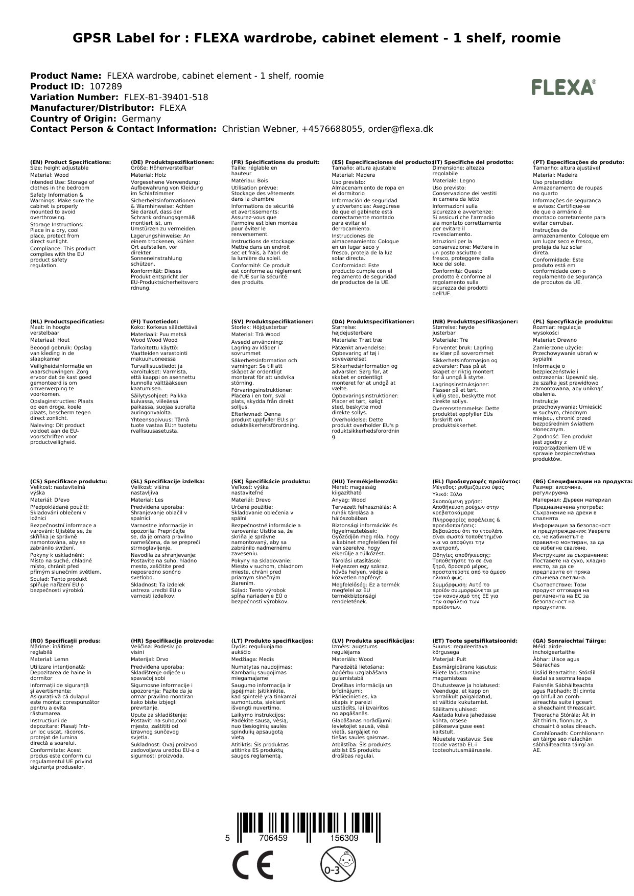 Das FLEXA Schrankelement ist aus zertifiziertem MDF und HDF gefertigt und garantiert so, dass es langlebig und umweltfreundlich ist. Es ist auch einfach zu pflegen - einfach mit einem feuchten Tuch abwischen.