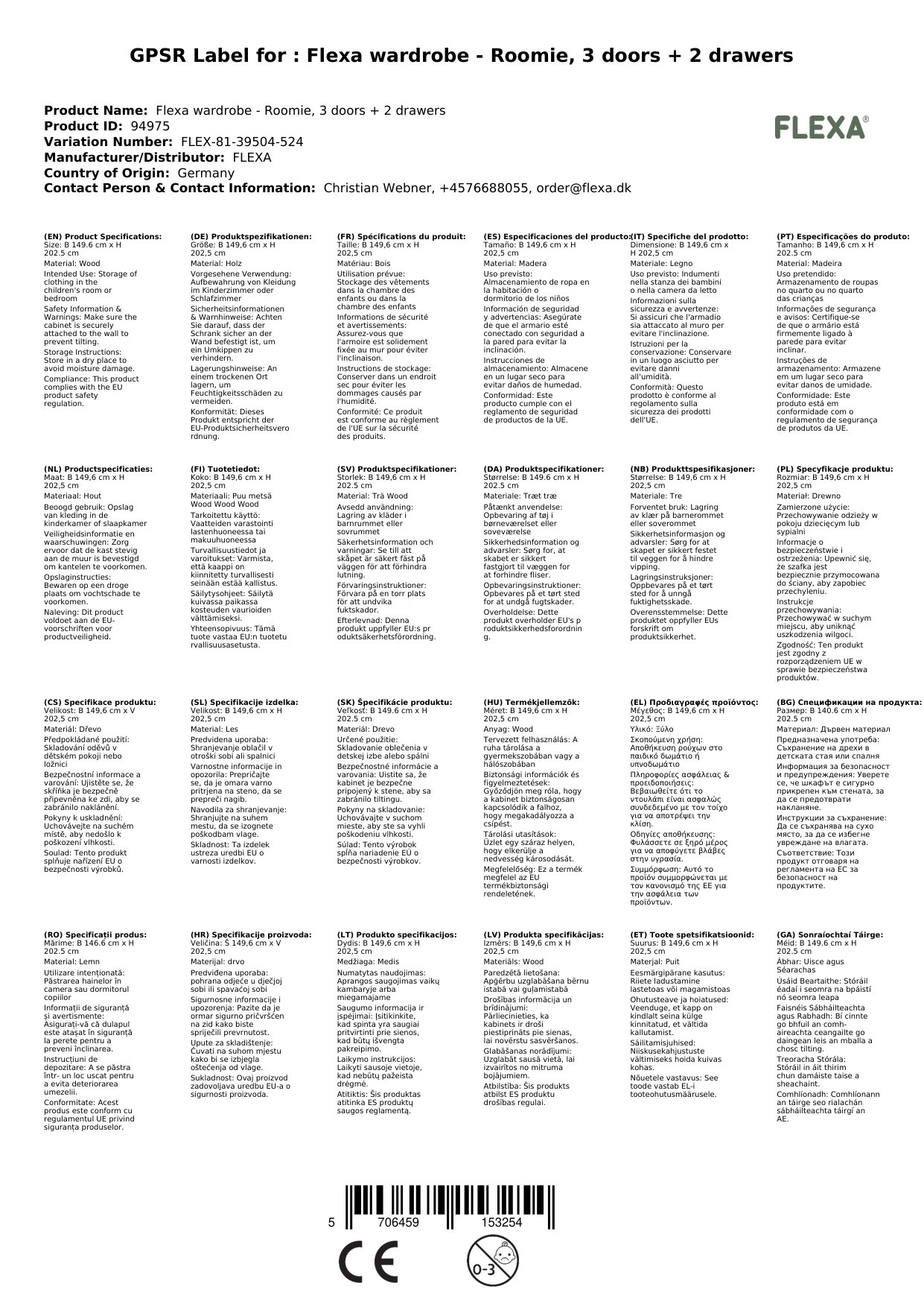 Stellen Sie eine Frage, um mehr über das Produkt zu erfahrenFlexa Kleiderschrank - Roomie, 3 Türen + 2 Schubladen