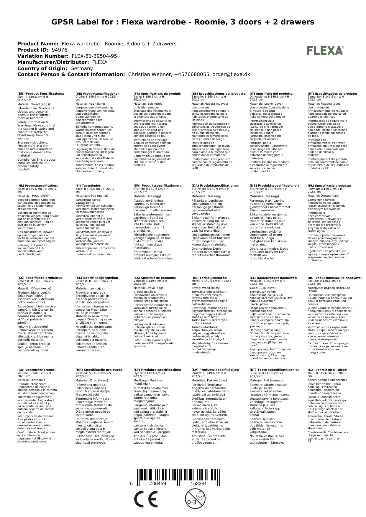 Stellen Sie eine Frage, um mehr über das Produkt zu erfahrenFlexa Kleiderschrank - Roomie, 3 Türen + 2 Schubladen