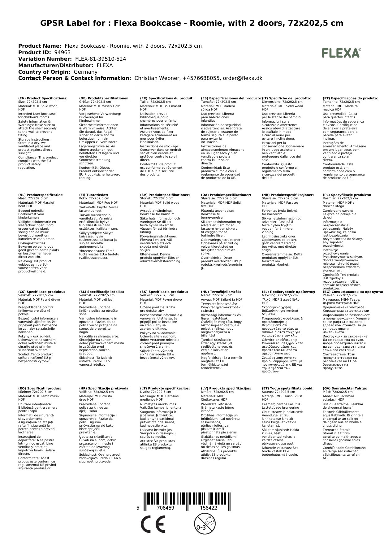 Das Flexa Bücherregal - Roomie ist ein hochwertiges Regal aus MDF Massiv Holz HDF Materialien, das in jedem Kinderzimmer ein wahrer Hingucker ist. Mit einer Höhe von 202,5 cm und einer Breite von 72 cm bietet das Bücherregal viel Platz für Bücher und andere Gegenstände.