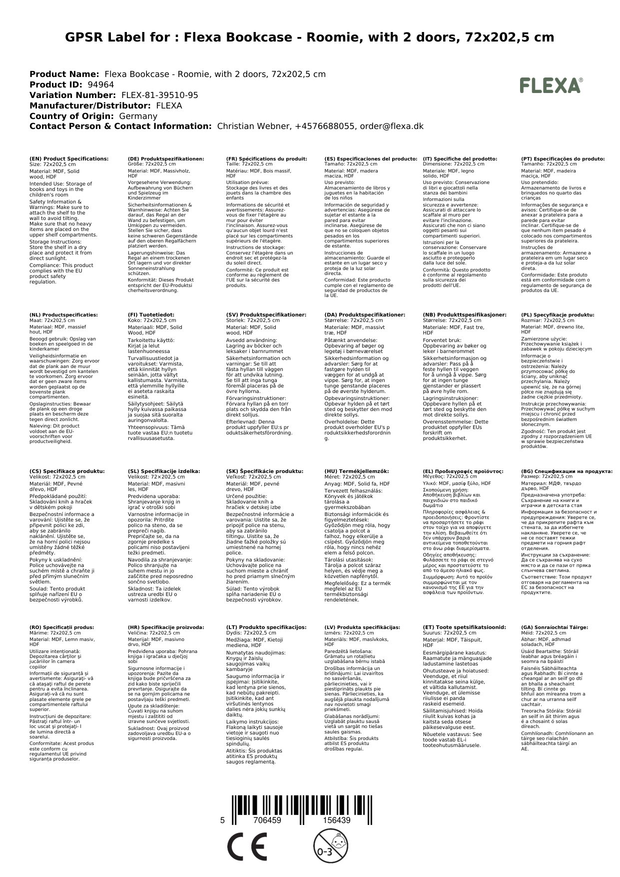Stellen Sie eine Frage, um mehr über das Produkt zu erfahrenFlexa Bücherregal - Roomie, mit 2 Türen, 72x202,5 cm