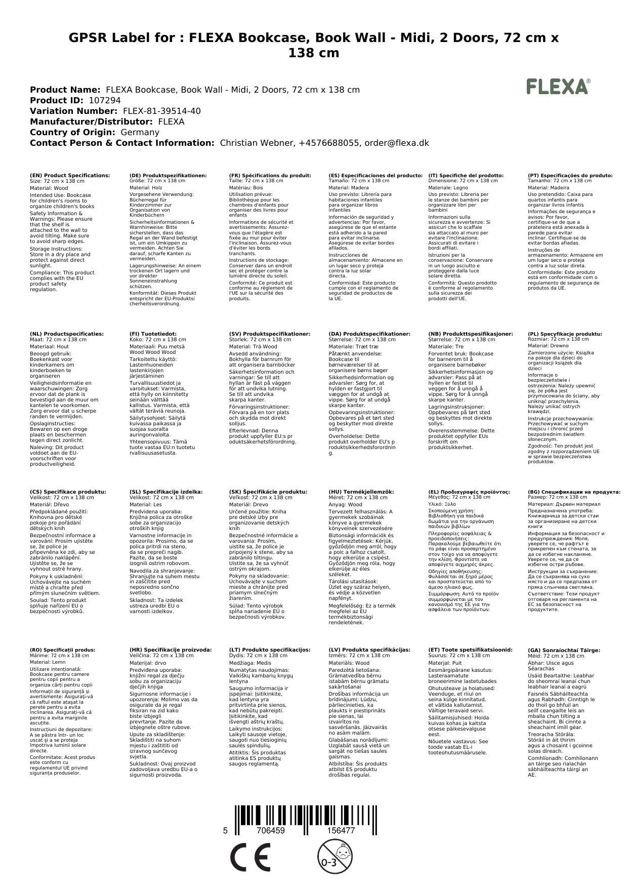 Stellen Sie eine Frage, um mehr über das Produkt zu erfahrenFLEXA Bücherregal, Bücherwand - Midi, 2 Türen, 72 cm x 138 cm