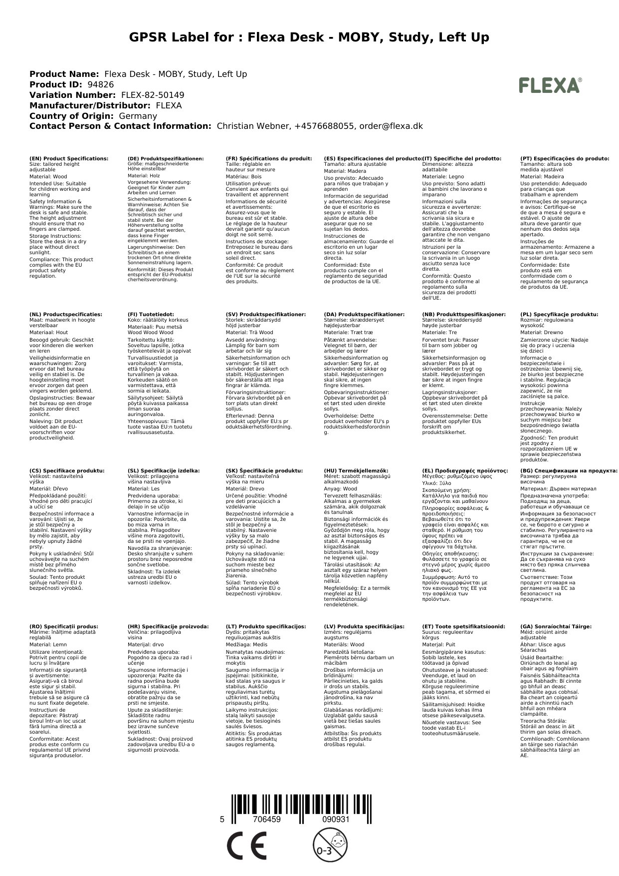 Stellen Sie eine Frage, um mehr über das Produkt zu erfahrenFlexa Schreibtisch - MOBY, Study, Left Up