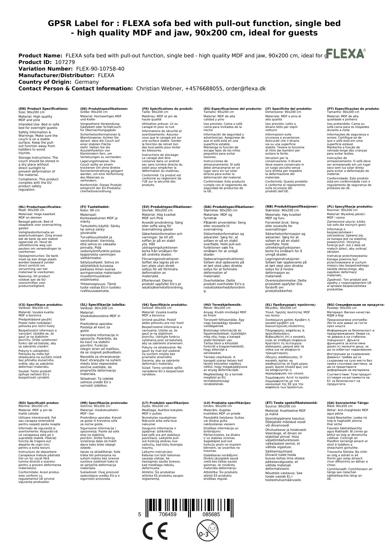 Stellen Sie eine Frage, um mehr über das Produkt zu erfahrenFLEXA Schlafcouch mit Ausziehfunktion, Einzelbett - Hochwertiges MDF und Kiefer, 90x200 cm, Ideal für Gäste