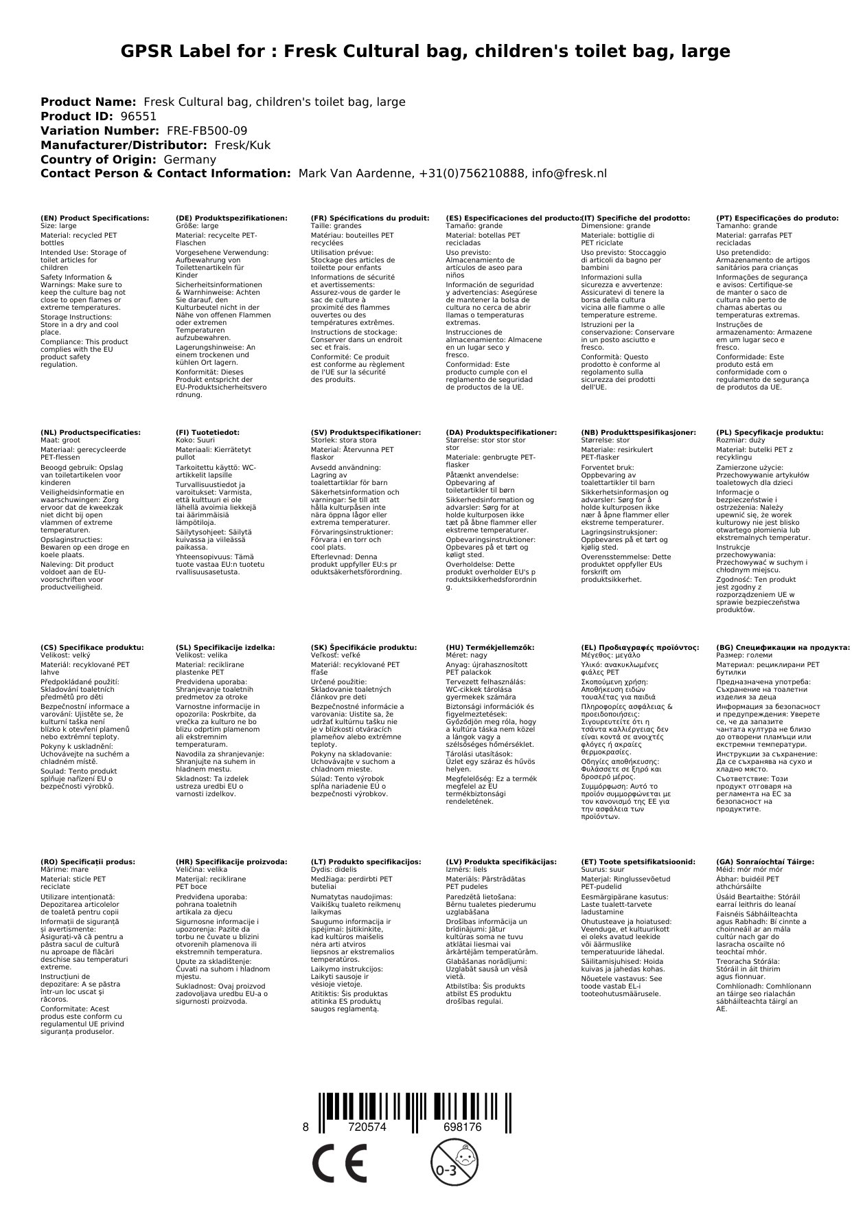 Die Fresk Kulturbeutel Toilettentasche ist eine perfekte Lösung für alle kleinen Abenteurer, die ihre eigenen Toilettenartikel benötigen. Hergestellt aus recycelten PET-Flaschen, ist es eine umweltfreundliche Option für umweltbewusste Eltern und Kinder.
