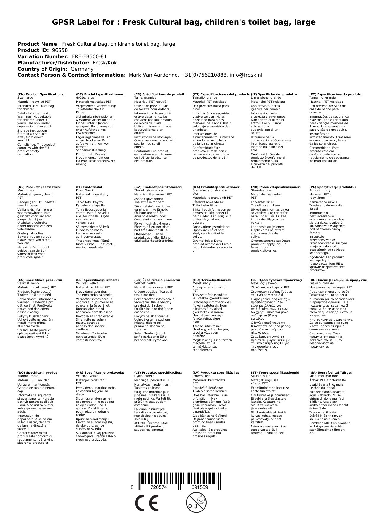 Stellen Sie eine Frage, um mehr über das Produkt zu erfahrenFresk Kulturbeutel Toilettentasche für Kinder, large
