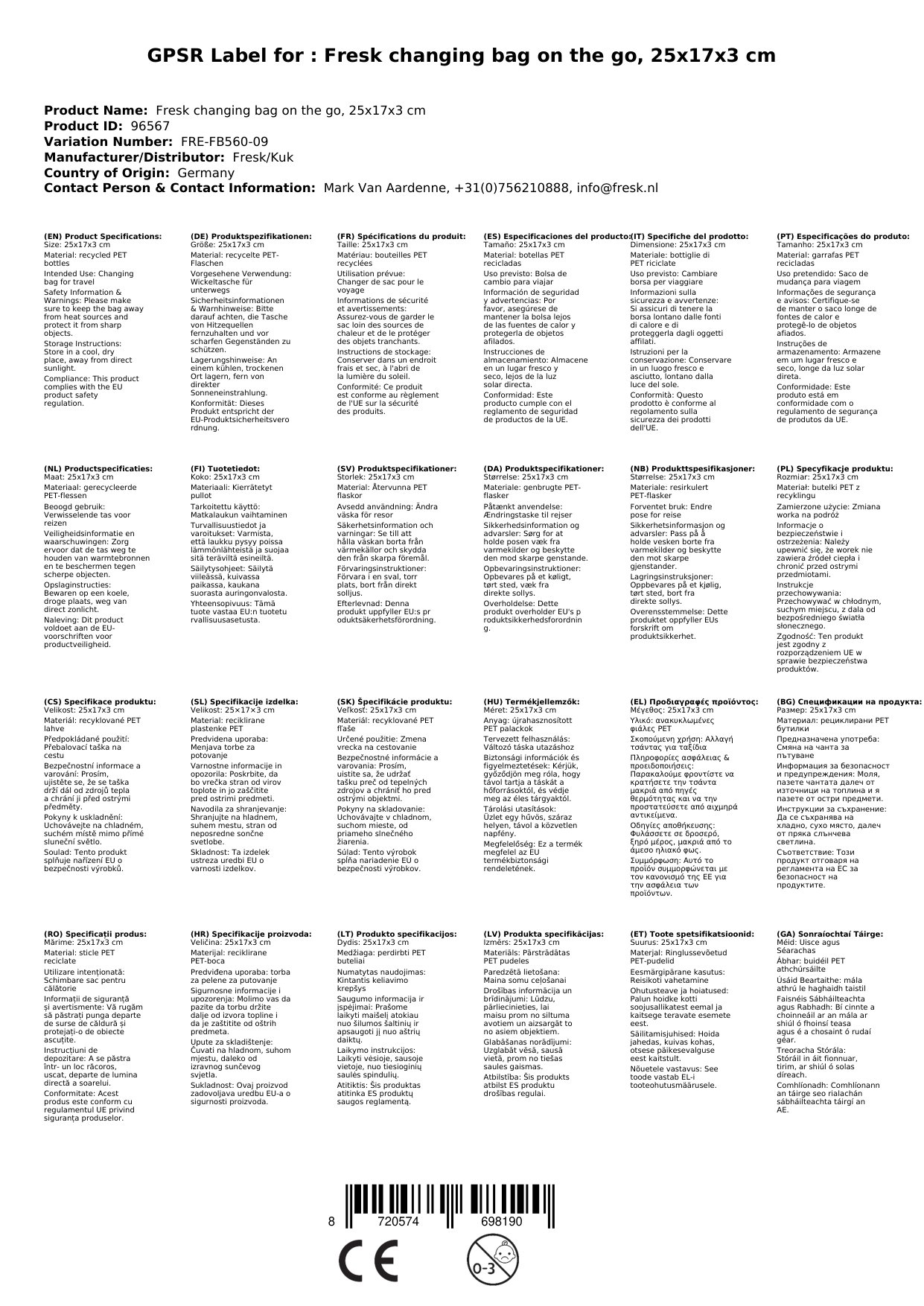 Stellen Sie eine Frage, um mehr über das Produkt zu erfahrenFresk Wickeltasche unterwegs, 25x17x3 cm