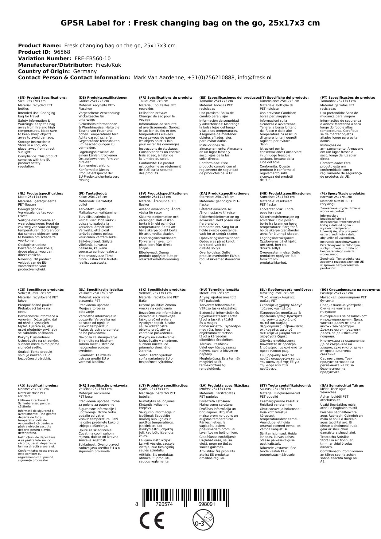 Stellen Sie eine Frage, um mehr über das Produkt zu erfahrenFresk Wickeltasche unterwegs, 25x17x3 cm