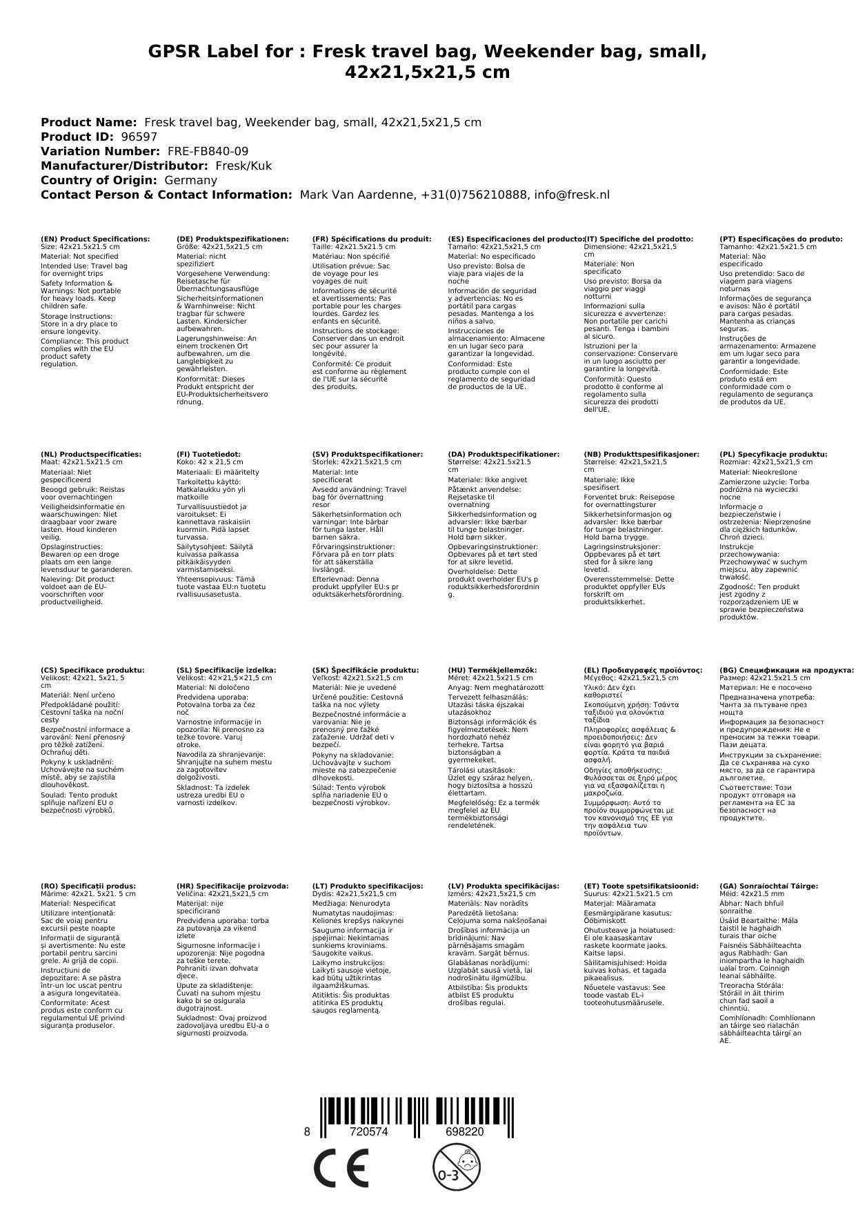 Stellen Sie eine Frage, um mehr über das Produkt zu erfahrenFresk Reisetasche, Weekender Tasche, kleine, 42x21,5x21,5 cm