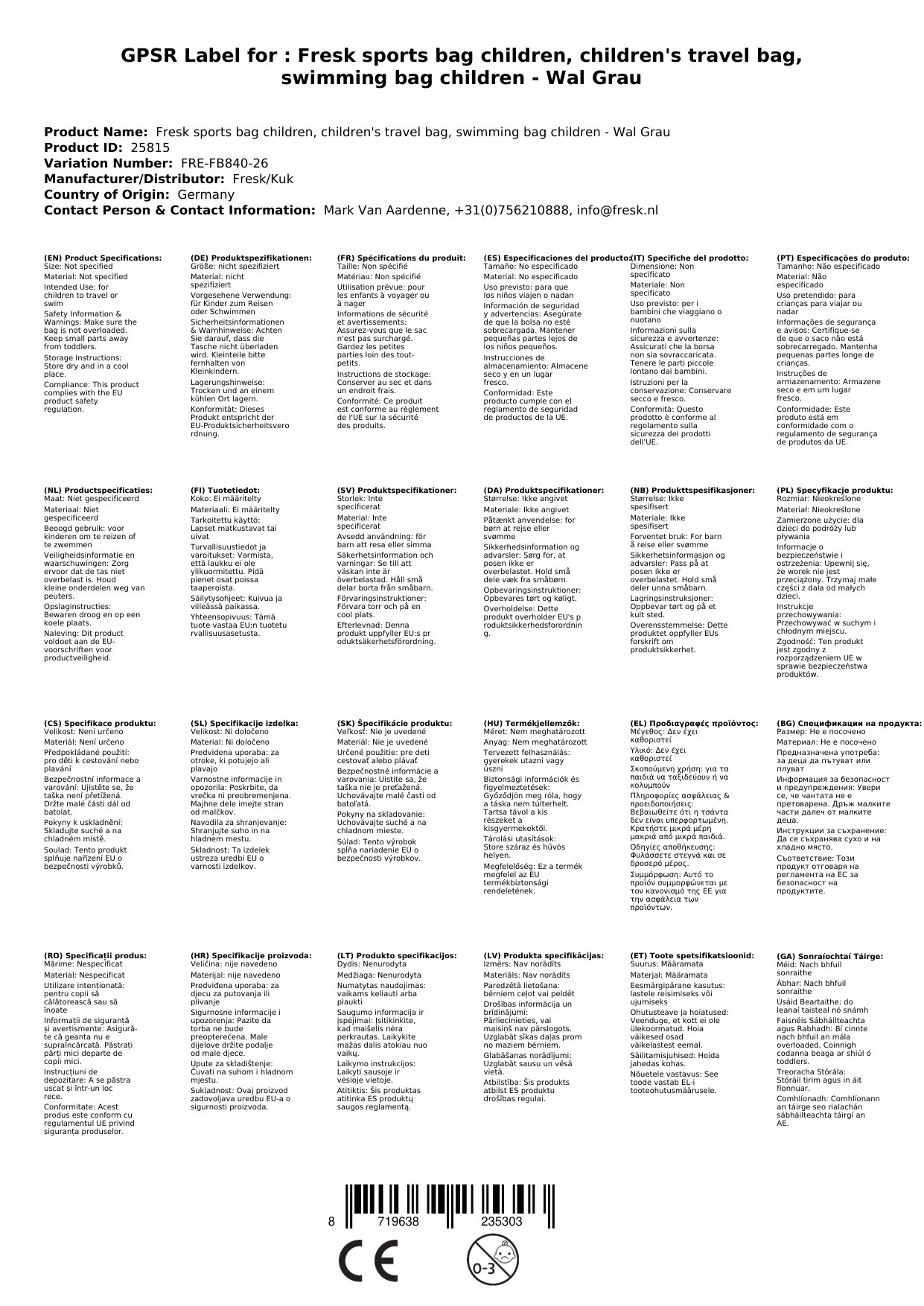 Die Kindertasche wird für Sie bei Fresk bestellt, falls wir sie nicht lagernd haben. Die aktuelle Lieferzeit sehen Sie weiter oben.