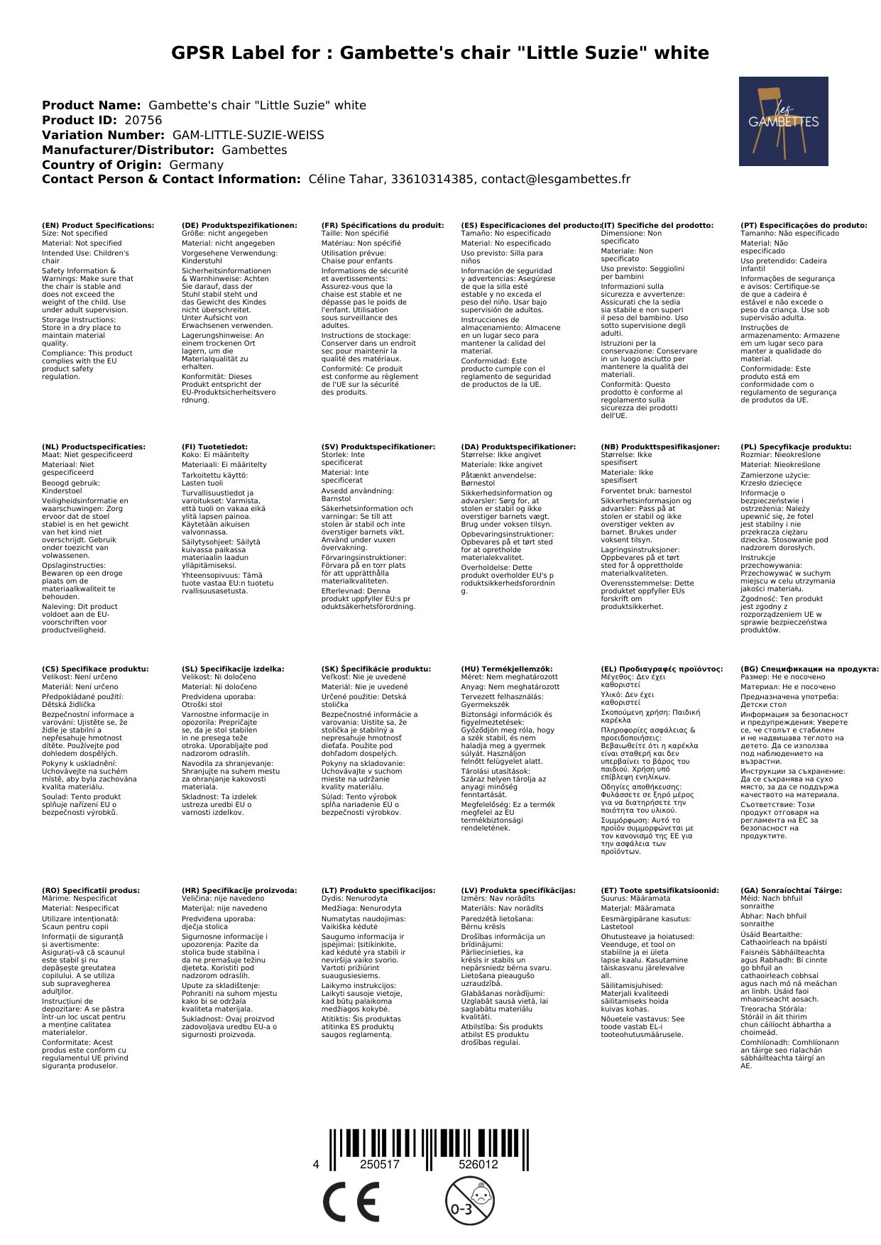 Gambettes Kinderstuhl "Little Suzie" weiss