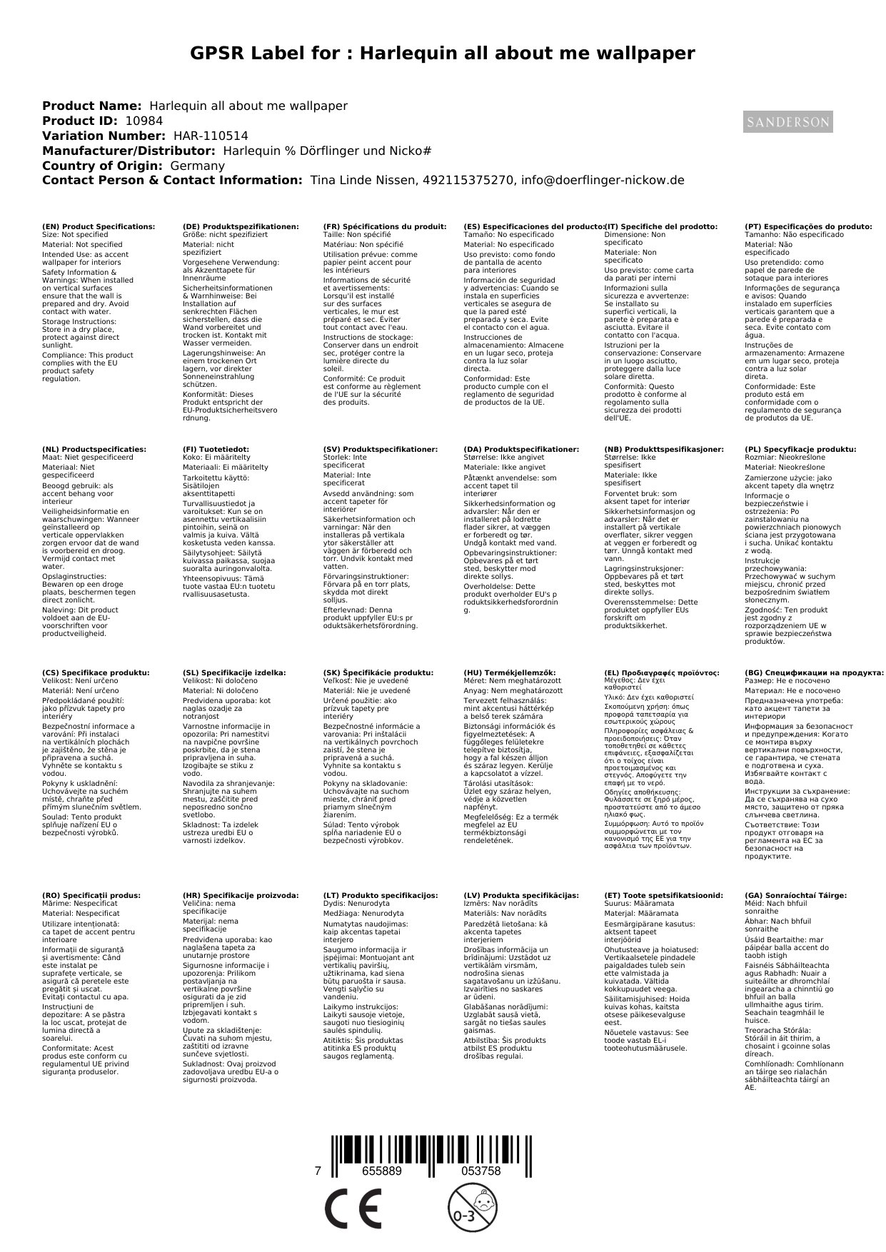 | dies ist eine streifentapete von harlequin. sie ist teil der kollektion 'all about me'. die breiten streifen haben einen gleichmässigen abstand und wirken sehr dominant. sie eignet sich hervorragend dazu akzente zu setzen. aber auch in kombination mit passenden tapeten und/oder stoffen ist sie eine fabelhafte möglichkeit ihr kinderzimmer zu dekorieren. passende stoffe und tapeten finden sie weiter unten als verweis. | - lieferung in rollenform - 10m pro rolle - breite: 52 cm - streifenbreite ca. 5 cm - ansatzfrei zu kleben - feucht abwischbar - lichtecht - kollektion: all about me - originalname: mimi stripe - hergestellt in grossbritannien | |