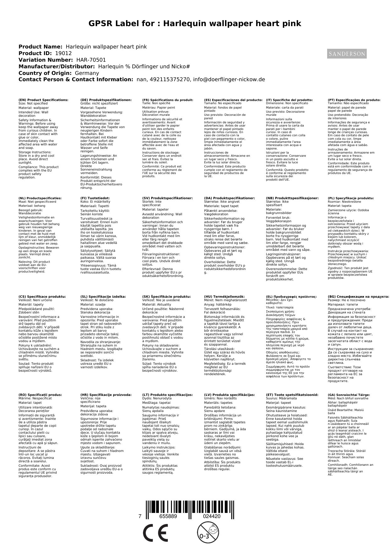 | sollte die tapete nicht lagernd sein, wird sie direkt nach ihrer bestellung beim hersteller in england geordert. die lieferzeit beträgt dann ca. 2 - 3 wochen. bereits mit der zweiten rolle ist die tapete innerhalb deutschlands versandkostenfrei. hinweis zu den fotos/farben bitte beachten sie, dass die farbdarstellung je nach bildschirm- und/oder computereinstellung varieren kann. auch können die farben in der darstellung vom original abweichen. wenn sie ganz sicher gehen wollen, dann nutzen sie bitte unseren musterservice. | | sie haben mehrere möglichkeiten passende stoffe und tapeten zu finden 1. ein erster hinweis ist immer das kürzel am anfang der artikelnummer. in diesem fall 'har'. alle artikel, die mit der selben buchstabenfolge beginnen entstammen der selben kollektion. so können sie schon einmal sicher sein, dass hier eine zusammengehörigkeit besteht. 2. in diesem internetladen gibt es in den jeweiligen kategorien auch immer eine zusammenfassung der kollektionen in einer unterkategorie. dort sind alle artikel einer kollektion präsentiert. 3. wir haben auch eine hauptkategorie 'kollektionen'. dort finden sie auch alle dekoprodukte passend zusammengefasst 4. sie haben die möglichkeit muster zu bestellen. schauen sie diesbzgl. bitte in unsere kategorie 'musterservice' |